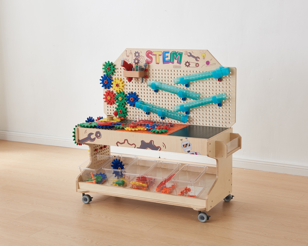 Мобильный STEM-стол - идеальное дополнение к любому дошкольному или начальному школьному классу. Подходит для развития мелкой моторики рук и зрительно-моторной координации, логического и творческого мышления, навыка конструирования и воображения, знакомства со STEM-обучением.