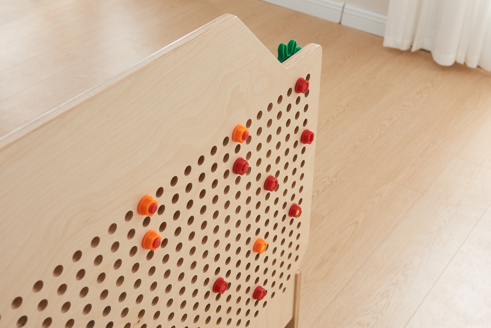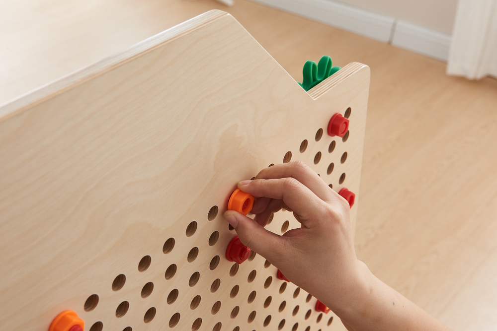 В комплекте идут вертикальная STEM-панель и настольная горизонтальная STEM-панель, которые дают возможность установки развивающих пособий Masterkidz, таких как винты, шестеренки, треки и т.д.