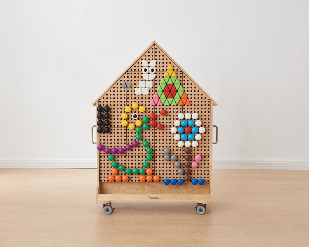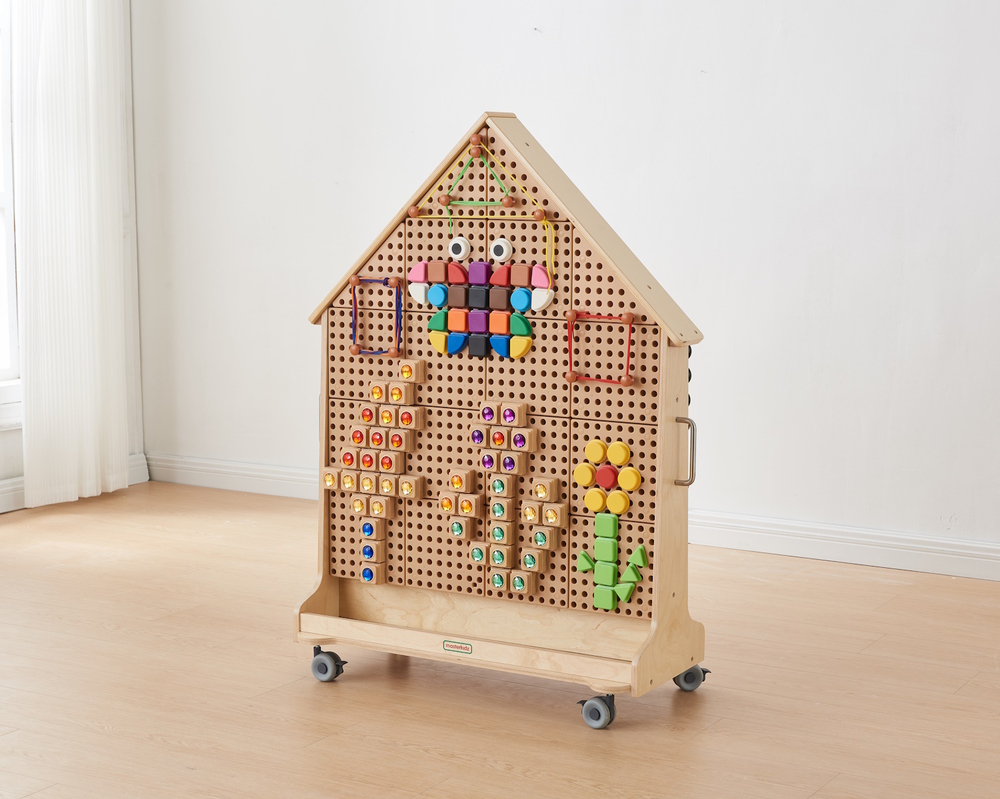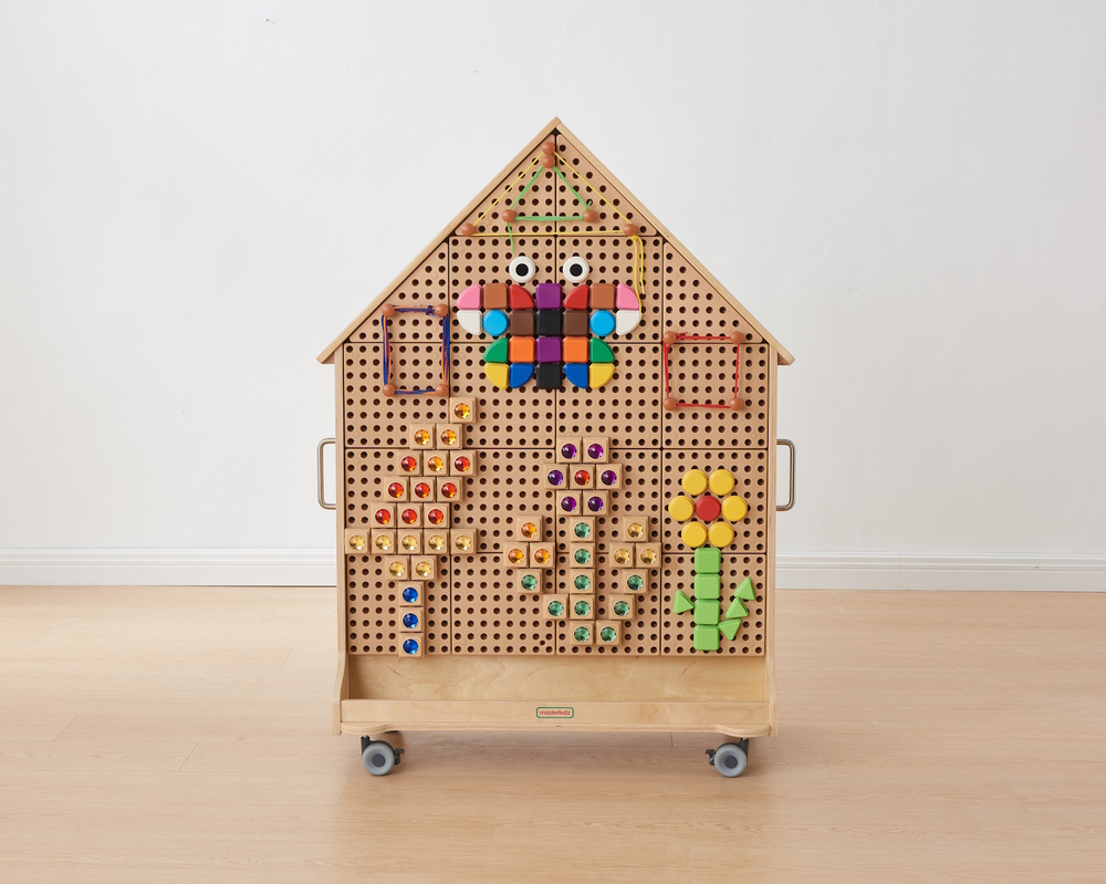 STEM стена имеет возможность установки развивающих образовательных комплектов Masterkidz, таких как колышки, сокровища, шнуровки, винты, кинетические треки, развивающие панели и множество других интересный пособий, которые обеспечивают постоянные новые задачи и позволяют детям ежедневно получать новый опыт и совершать новые открытия. Таким образом обычная стена превращается в супер - игрушку для веселого и интерактивного обучения!
