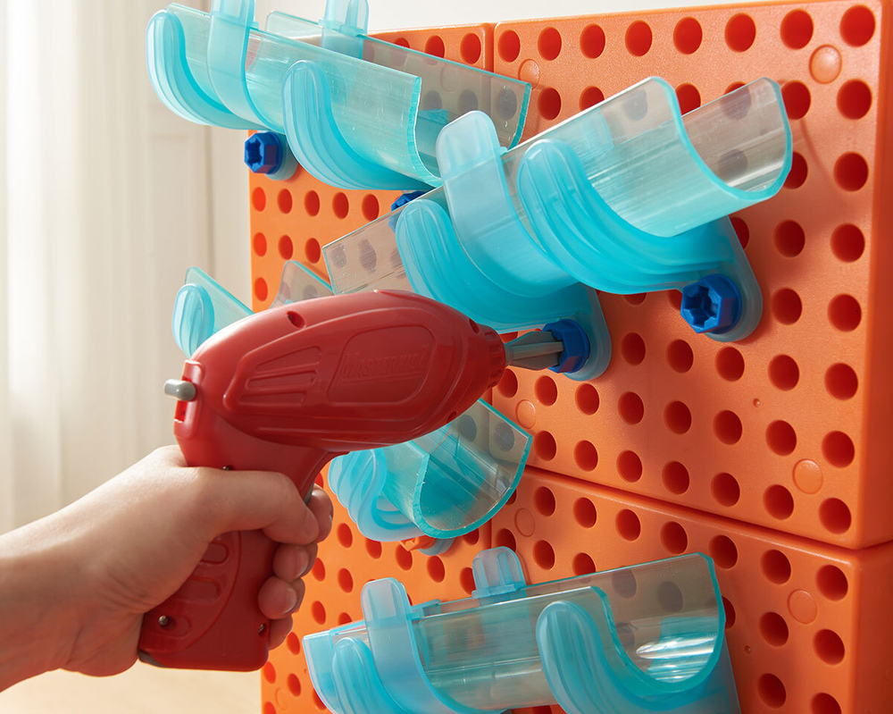 В комплект входят панели с отверстиями, есть возможность дополнительной установки развивающих пособий Masterkids, таких как колышки, сокровища, шнуровки, винты, кинетические треки. Пособия приобретаются отдельно.
