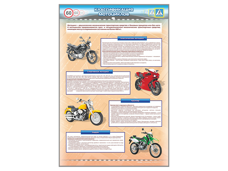 Стенд представляет собой информационную панель, на которой размещены сведения о классификации мотоциклов.