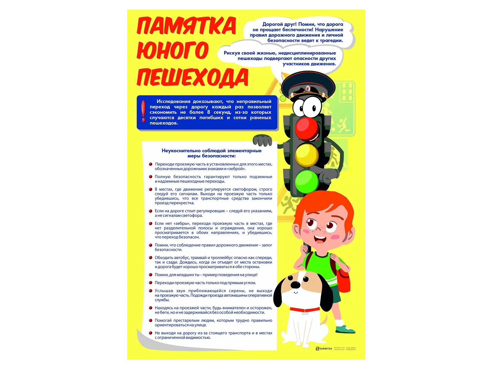 Стенд представляет собой информационную панель, на которой размещена памятка юного пешехода.