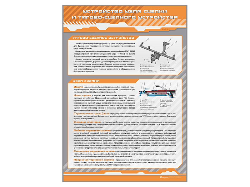 Стенд представляет собой информационную панель, на которой размещены сведения об устройстве узла сцепки и тягово-сцепного устройства.