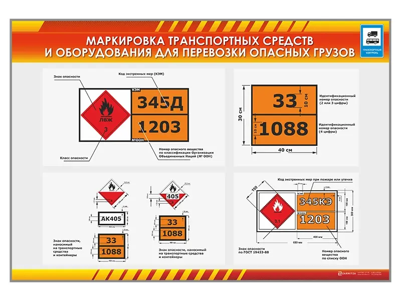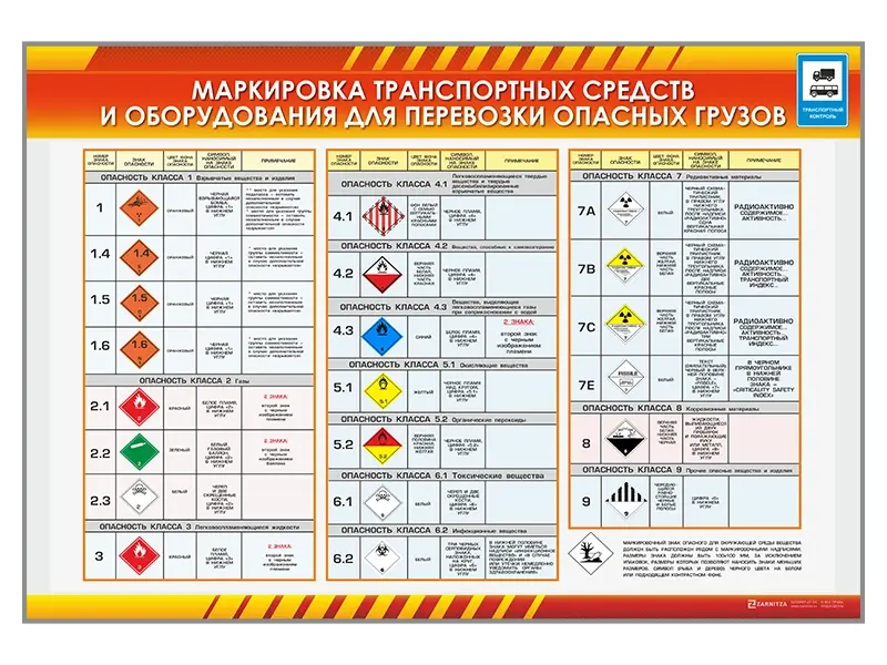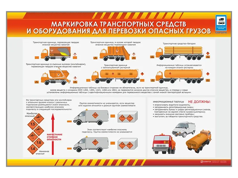 Стенды представляют собой информационные панели, на которых размещены сведения о маркировке транспортных средств и оборудования для перевозки опасных грузов.