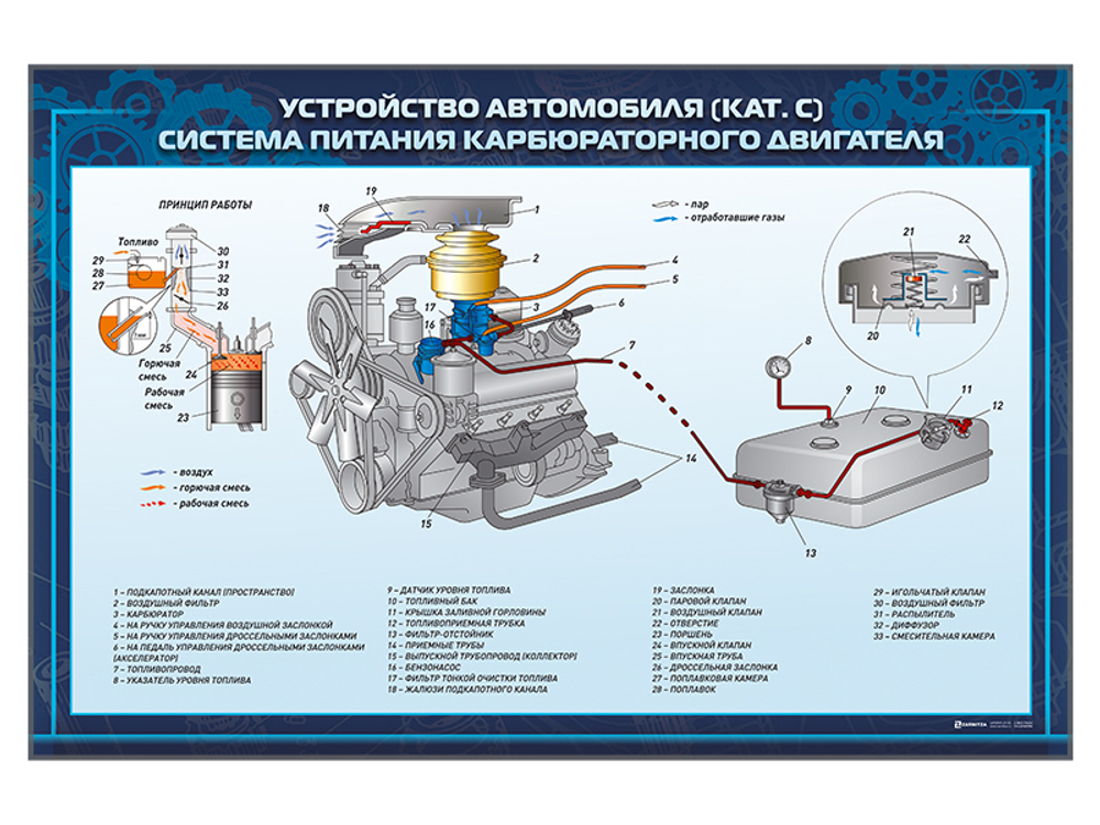Стенды представляют собой информационные панели, на которых изображены следующие принципиальные схемы устройства механизмов транспортных средств категории "С":