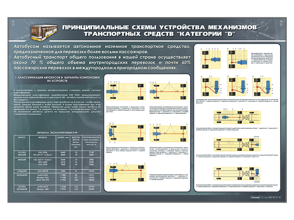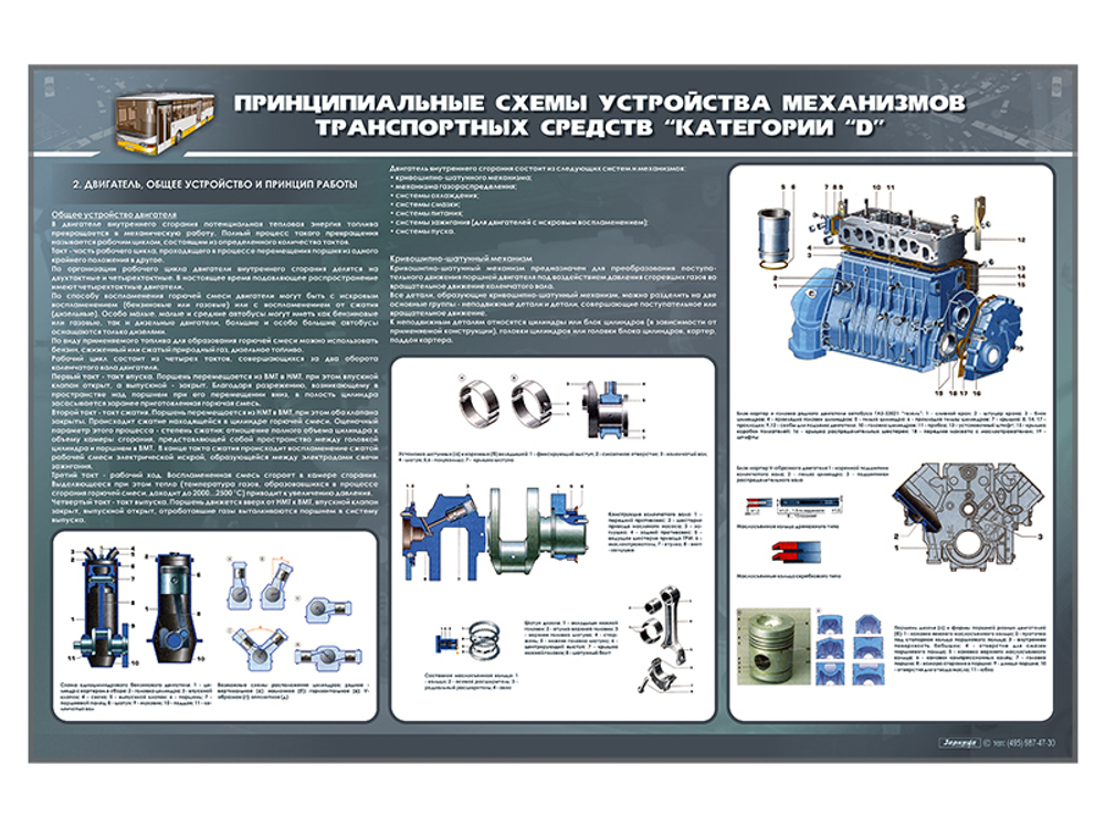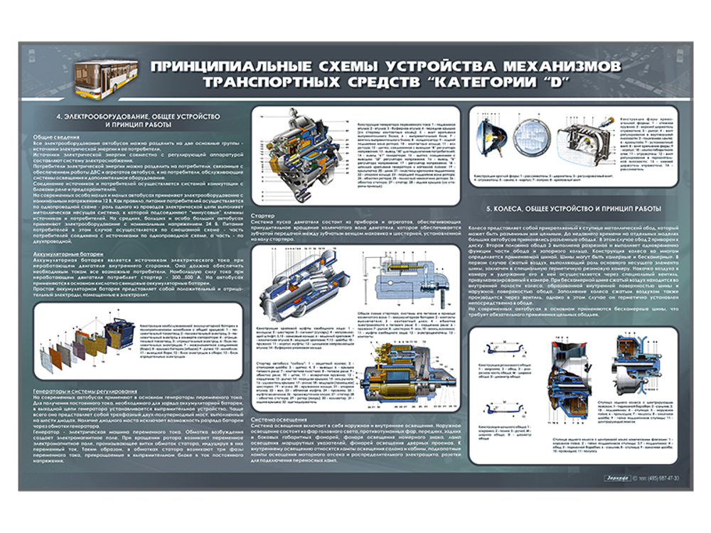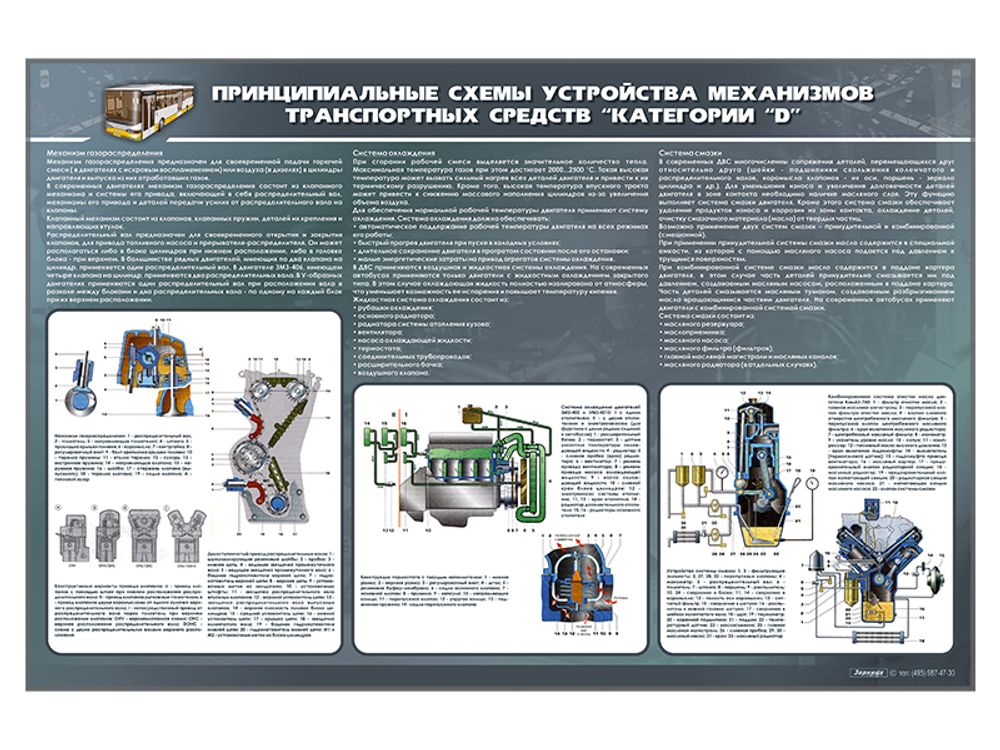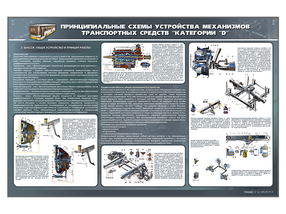 Стенды предназначены для наглядного отображения информации о механизмах автомобиля, а также для формирования у учащихся автошкол знаний об устройстве транспортных средств категории "D".