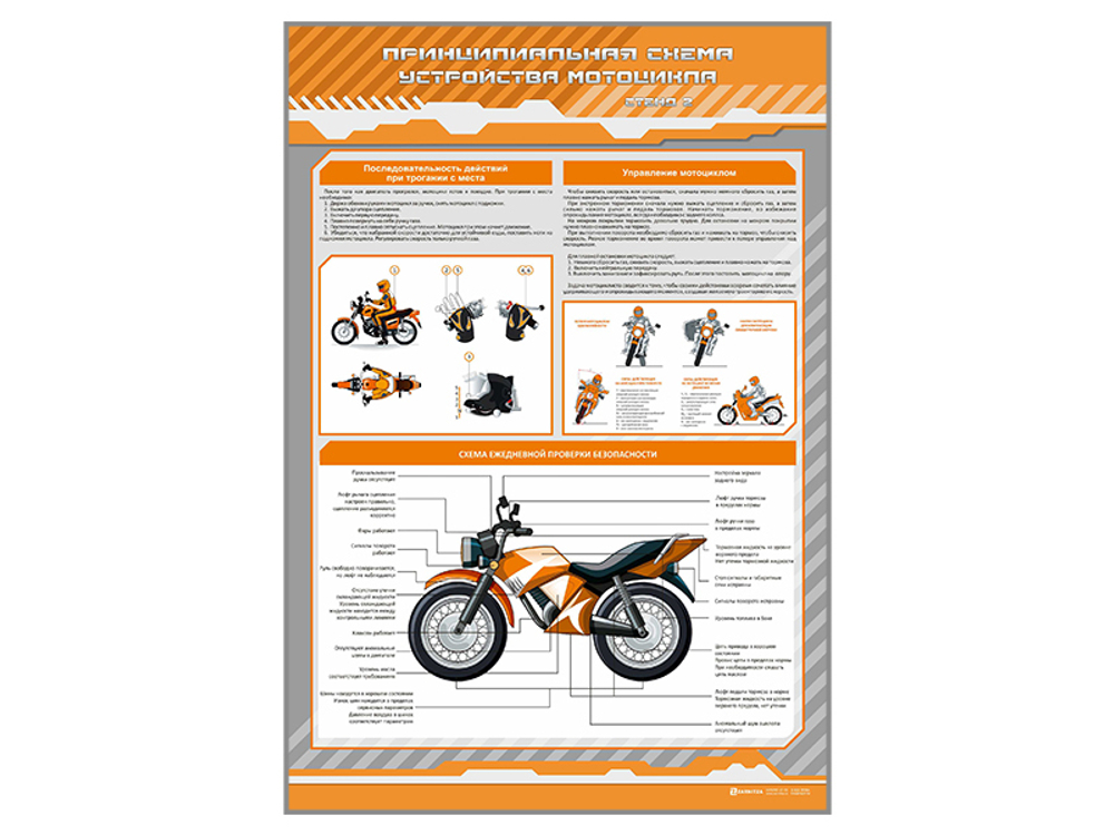 Стенды предназначены для наглядного отображения информации об основных узлах мотоцикла, последовательности действий при трогании с места, основах управления, а также для формирования у учащихся автошкол знаний об особенностях эксплуатации транспортных средств категории "А".
