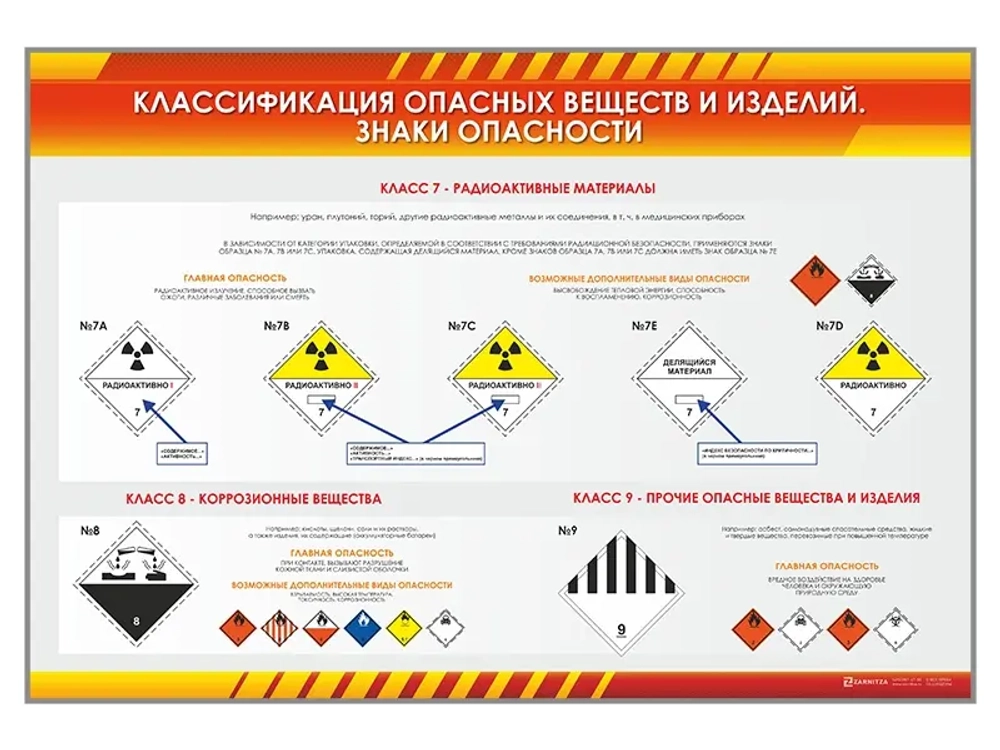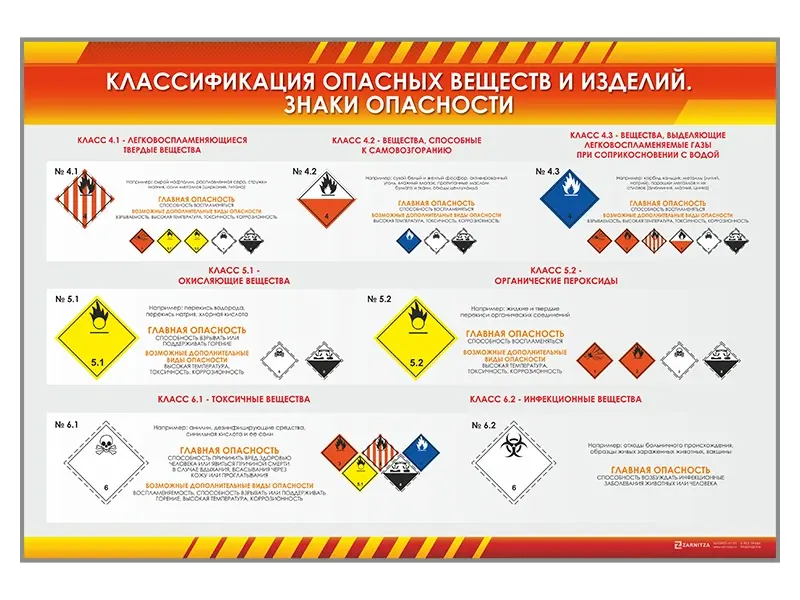 Стенды предназначены для наглядного отображения информации о знаках опасности, наносимых на опасные грузы в соответствии с их классификацией, а также для формирования у учащихся автошкол знаний об особенностях перевозки опасных грузов.
