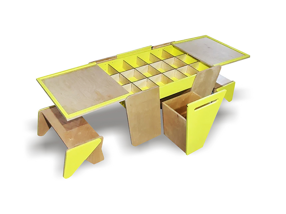 Стол создан специально для работы с группой детей, но также подходит и для индивидуальных занятий. Две раздвижные столешницы открывают пространство для хранения необходимых деталей для занятий по конструированию. Процесс работы с конструктором вместе со столом «Трансформер» будет легким и непринужденным, а также дети будут лучше воспринимать формы и величину объектов, цвета.