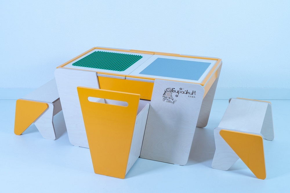 Стол для конструирования «Собирайкин» используется детскими учреждениями или специальными группами по конструированию и моделированию. Благодаря идеально продуманной конструкции за ним могут заниматься двое малышей одновременно, развивая не только моторику рук, но и социальное общение.