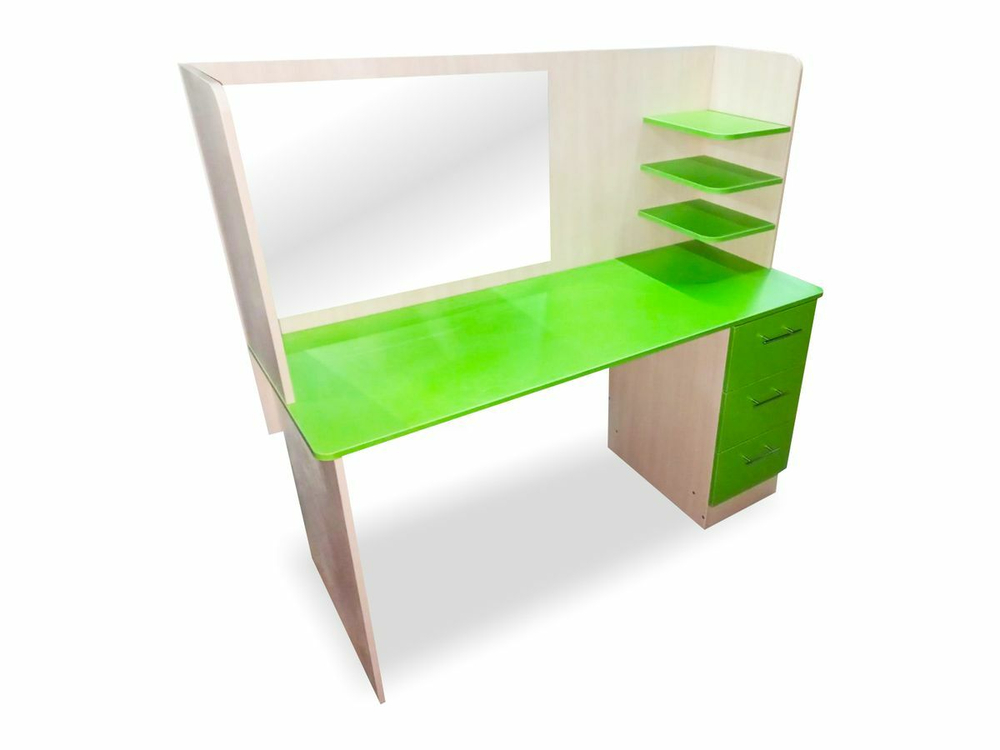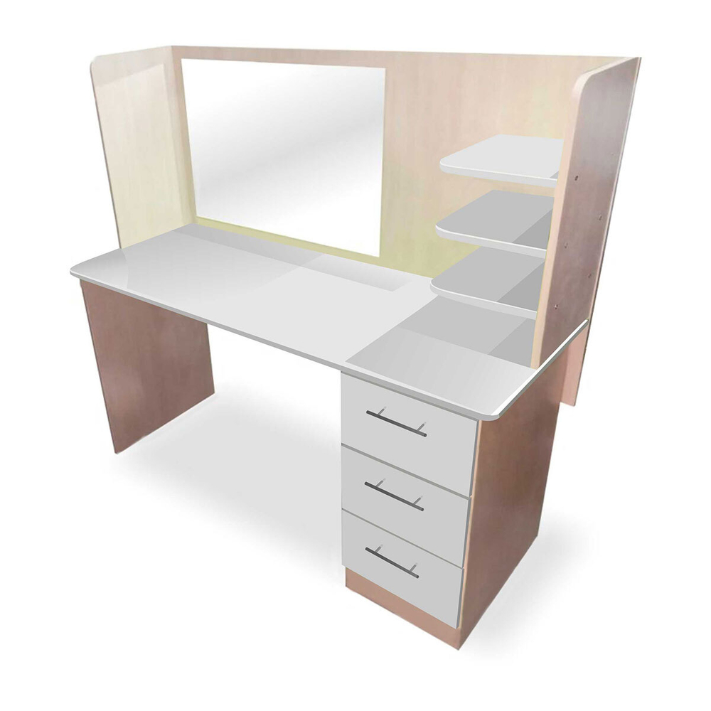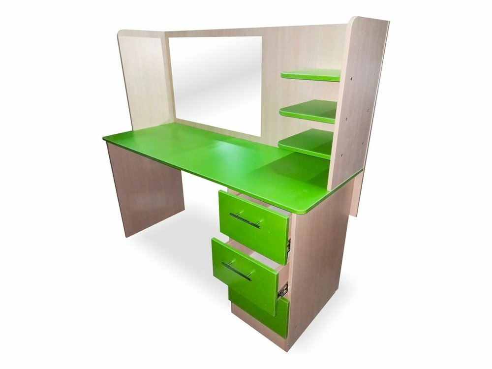 Стол по боковым сторонам имеет полки, на которых можно расположить часто используемые материалы.
