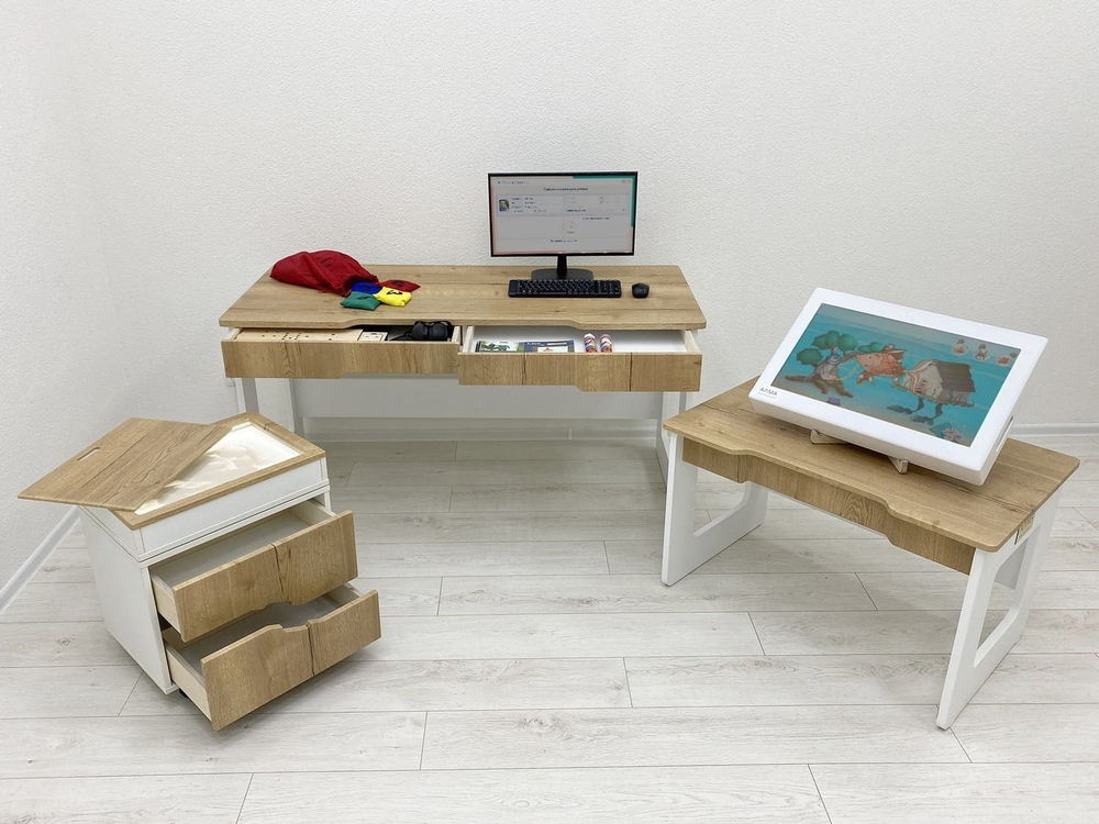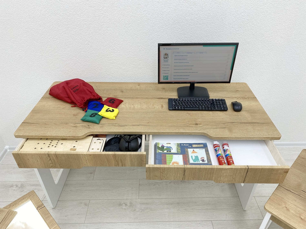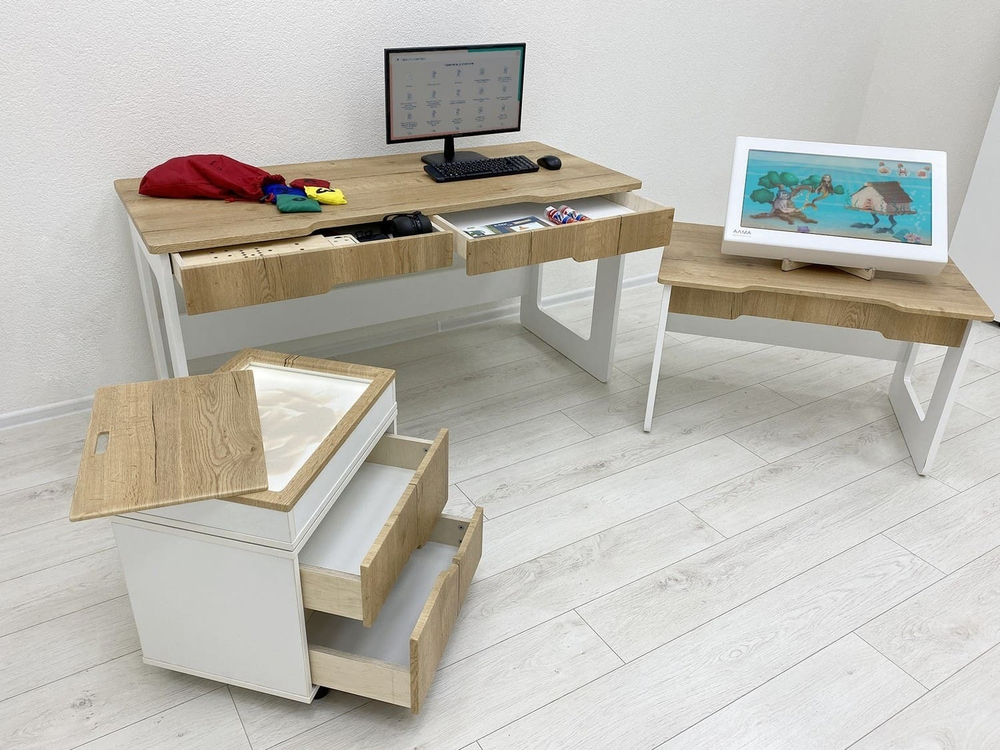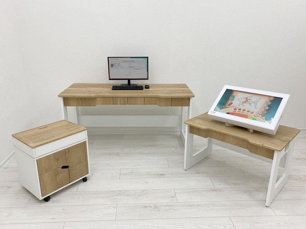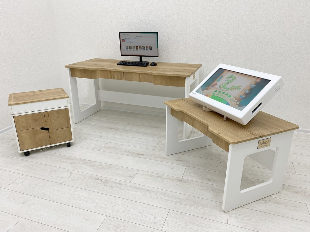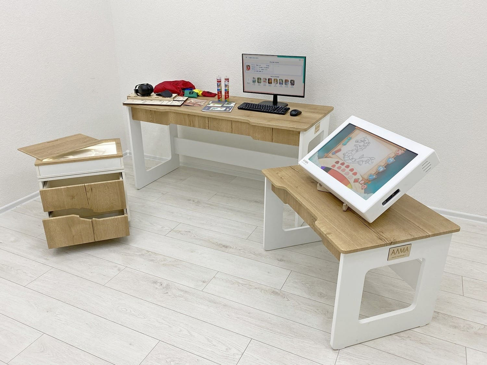 АЛМА ПРО – это профессиональный стол с отдельным рабочим местом для специалиста психолога-дефектолога.