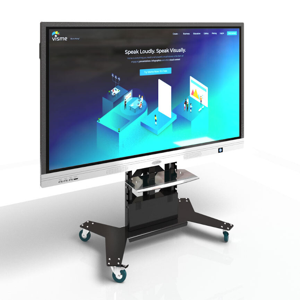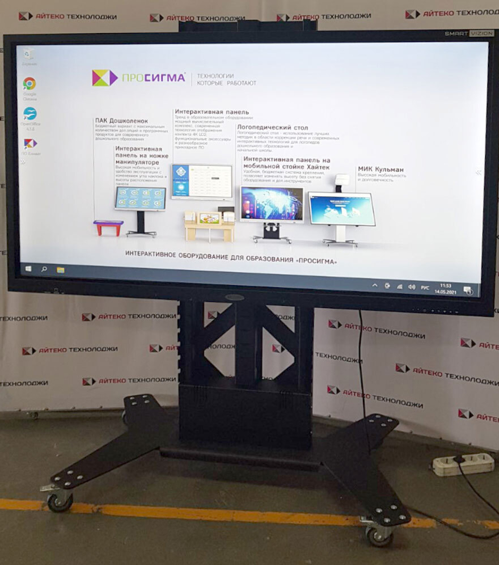 Мобильная стойка обеспечивает возможность напольной установки интерактивного комплекса с регулировкой по высоте и нагрузкой до 100 кг.