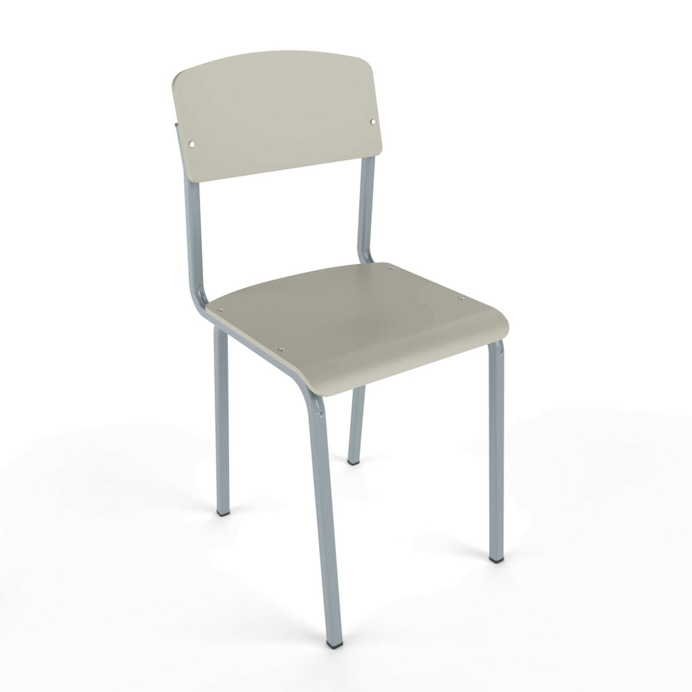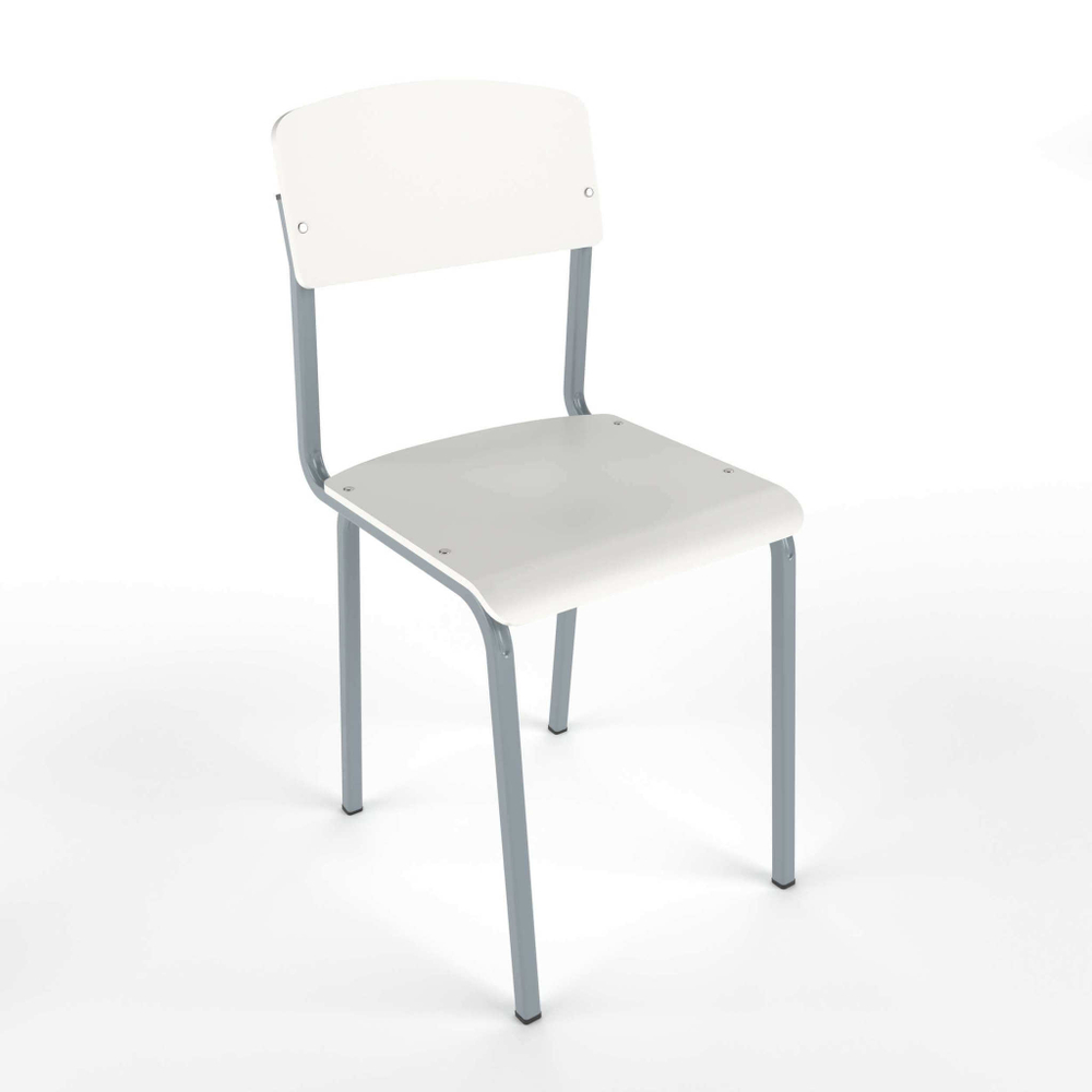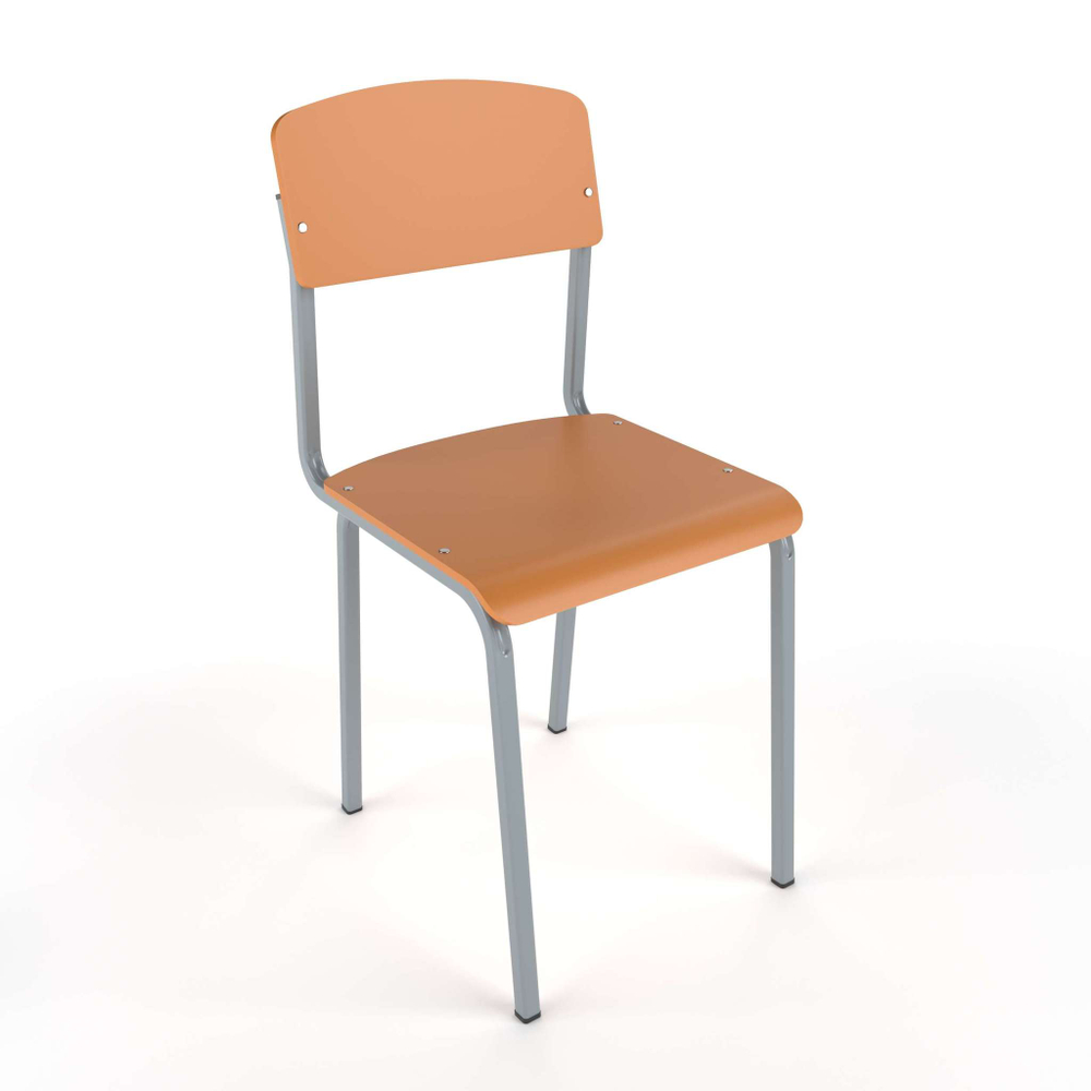 Сиденье и спинка изготовлены из гнутоклеенной фанеры толщиной не менее 8 мм, покрытой цветным декоративным пластиком. Металлический каркас выполнен из профиля квадратного сечения 20х20 мм с толщиной стенок не менее 1,2 мм и покрыт порошковой краской, стойкой к химическим и механическим воздействиям. На свободных концах труб установлены заглушки из ударопрочных полимеров. Каркас стула имеет полимерные подпятники, предотвращающие повреждение напольного покрытия. Сиденье и спинка крепятся к основанию при помощи мебельных болтов и гаек. Вся крепежная фурнитура на металлокаркасах скрыта внутри трубы для продления срока службы изделия. Стул имеет цветовую маркировку в соответствии с ростовой группой.