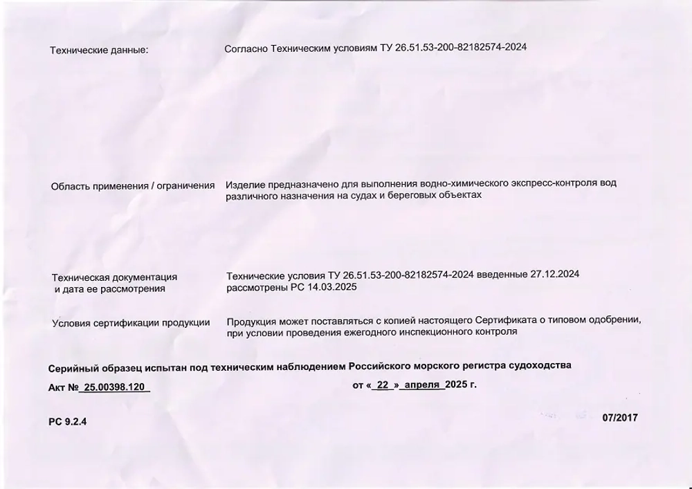операционного водно-химического контроля при эксплуатации судового оборудования (котлоагрегатов, паровых и энерготехнологических, водогрейных котлов и т.п.).