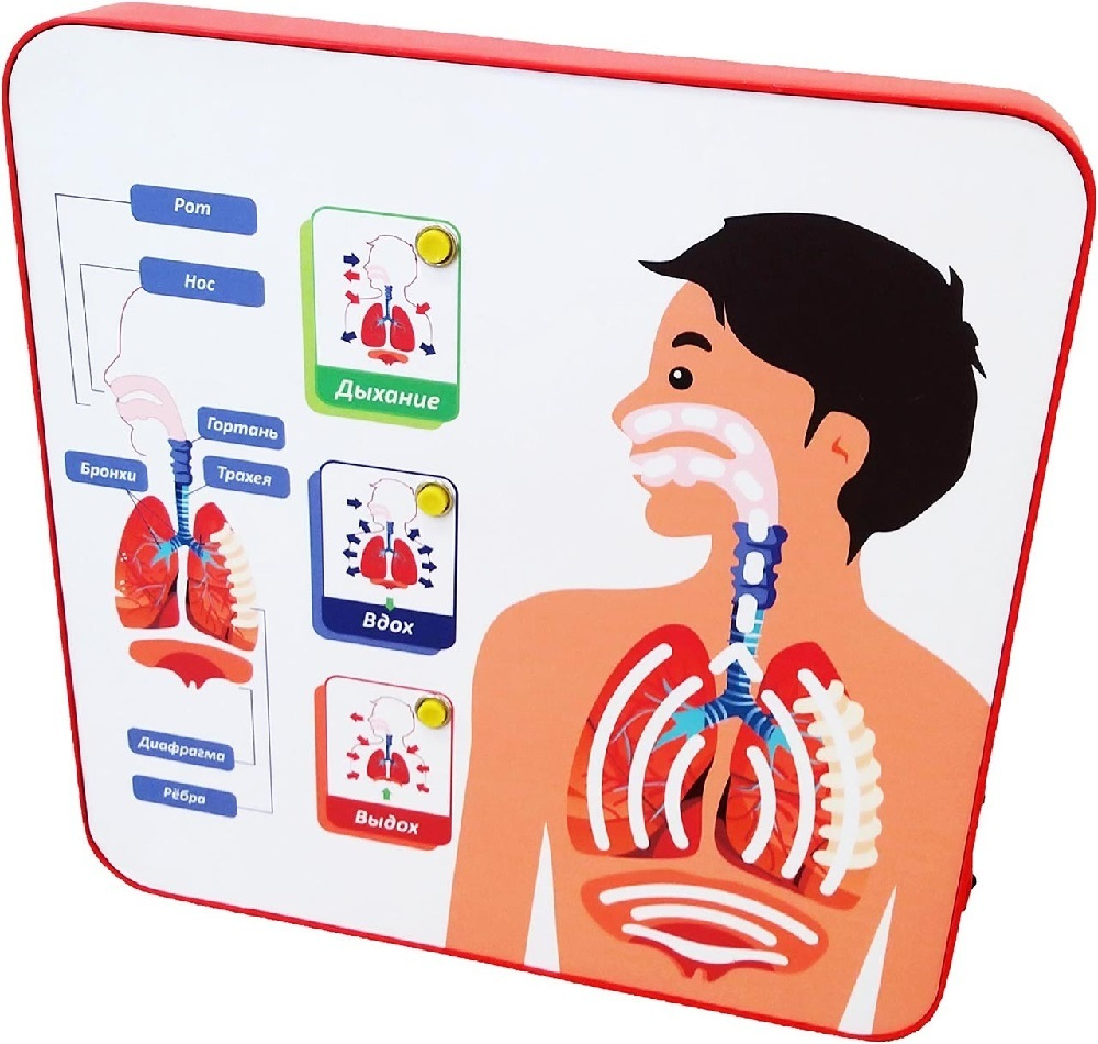 Свето-динамическая тактильная панель Познайкино «Дыхательная система» позволяет изучить весь цикл работы дыхательной системы, а именно – как работают органы при вдохе и выдохе. Панель снабжена кнопками и световыми индикаторами. Есть вариант настольного и настенного исполнения. Предназначена для занятий в ДОУ и начальных классах, совместно с педагогом.