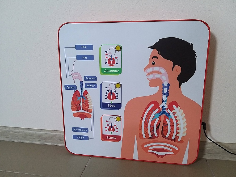 Свето-динамическая тактильная панель для изучения дыхательной системы.