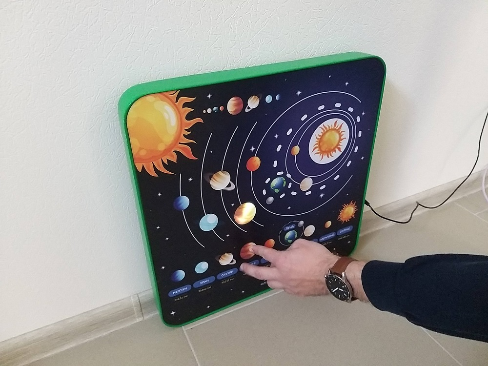 Свето-динамическая тактильная панель предназначена для ознакомления детей с понятием солнечной системы.