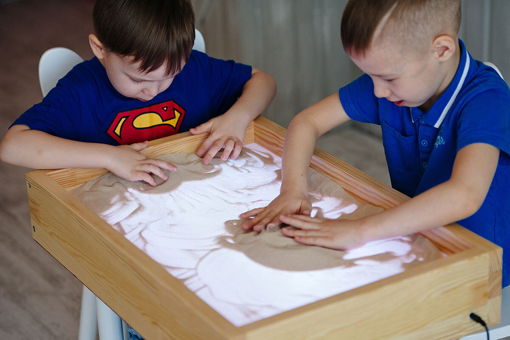 В процессе игры дети создают собственные уникальные картинки, постоянно рассматривая изменения между переливами песка, что способствует релаксации и уменьшению стресса, в то время как различные движения рук совершенных в процессе игры, положительно влияют на моторику рук малышей, используемых в иных действиях, повышают тактильную чувствительность и способствуют развитию фантазии и креативных способностей.
