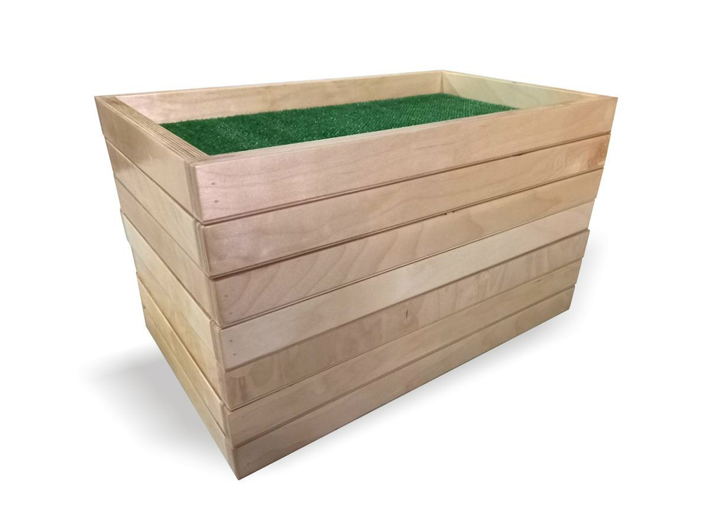 Представляет собой семь небольших ящиков с предметами разных текстур: трава, галька, ковролин и пр. Конструкция компактно хранится в углу комнаты: ящики удобно устанавливаются друг на друга и легко переносятся благодаря небольшому весу.
