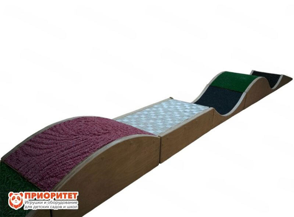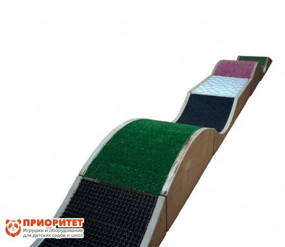Тактильная дорожка – это интересный тренажер, который состоит из 7 развивающих модулей. Они соединяются между собой и образуют длинную дорожку, которая развивает чувство равновесия и координацию в пространстве, снимают психоэмоциональное напряжение детей и взрослых, нормализуют тонус ступней, развивают сенсорный опыт и тактильные ощущения, а также осуществляется профилактика плоскостопия. Также полезна для занятий с пожилыми людьми, на которых дорожка оказывает терапевтический эффект.