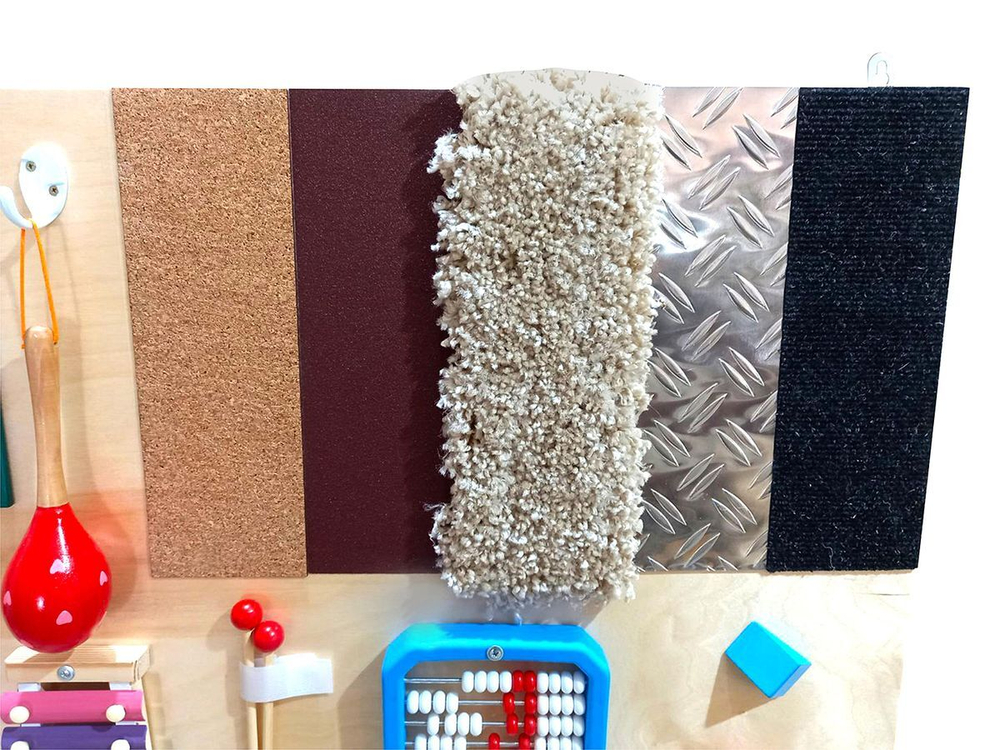 Установите панель и усадите перед ней ребенка. На первом занятии позвольте малышу самостоятельно изучить все элементы. После расспросите ребенка о том какие ощущения он испытывает, слыша тот или иной звук. Спросите прикосновения к какому из материалов наиболее приятно и почему.
