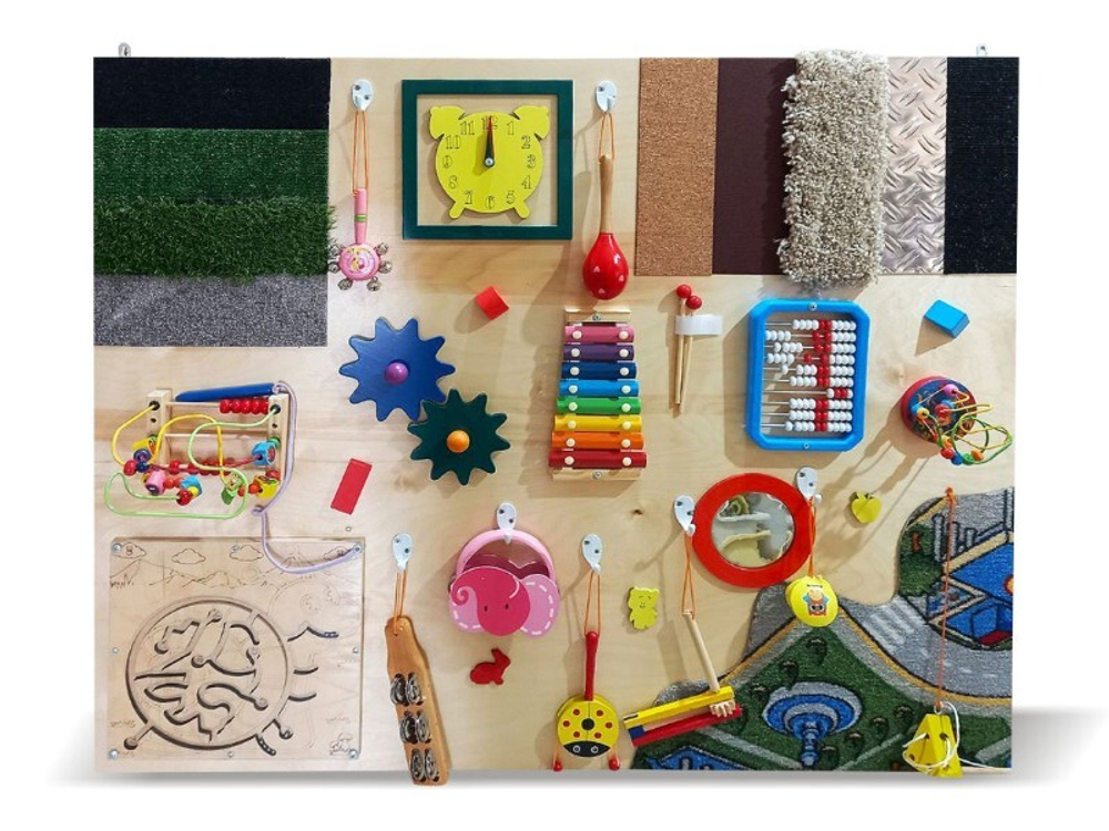 Тактильна панель «Мелодия счастья» наполнена элементами, которые помогут ребенку развить слух, запустить речь, улучшить навыки общения, обогатить тактильные ощущения.