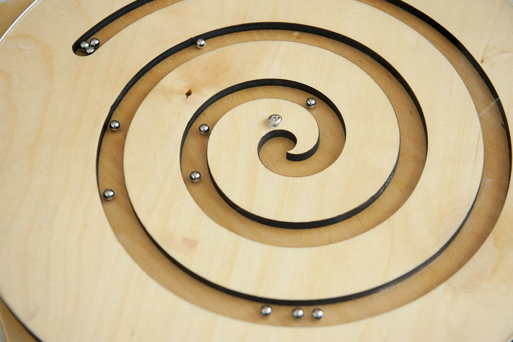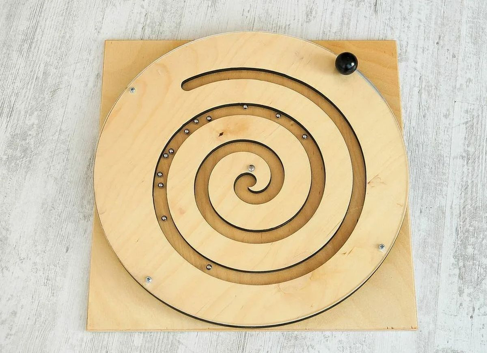 Панель представляет собой доску, на которой имеется дорожка спиралевидной формы. По лабиринту нужно катать маленькие шарики, чтобы каждый из них прошел путь от начала до конца. Тренажер помогает укрепить мышечную систему кистей, стимулирует моторику, координацию и развивает пространственное мышление. Дети могут проявить фантазию и представить дорожку в виде сложной трассы, по которой мчатся болиды. Оборудование рекомендовано для использования в дошкольных учреждениях, коррекционных, развивающих и реабилитационных центрах, а также в домашних условиях.
