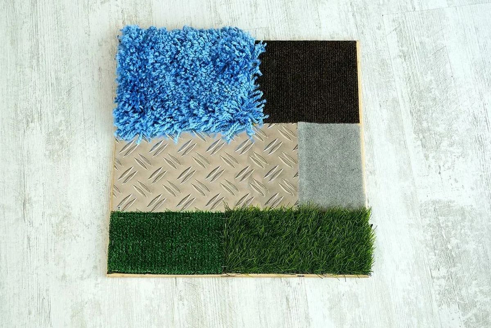 На панели представлен набор различных материалов, каждый из которых выделяется своей текстурой и составом. Трогая разные предметы, дети обогащают тактильные ощущения, знакомятся с новыми материалами и изучают их применение. Панель рекомендуется использовать в детских садах, школах, центрах развития и в домашней среде.