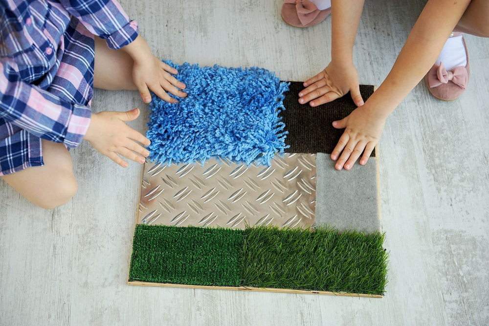 Поиграйте с детьми в ассоциации. Пусть каждый, кто трогает тот или иной материал, озвучивает первое, что приходит в голову. Например: мягкий ворс – тепло и уют, жесткие колючки – чистая обувь. Для выполнения упражнения детям потребуется напрячь память и вспомнить окружающие их предметы. В процессе развивается пространственное мышление, моторика, а дети узнают много новых слов.