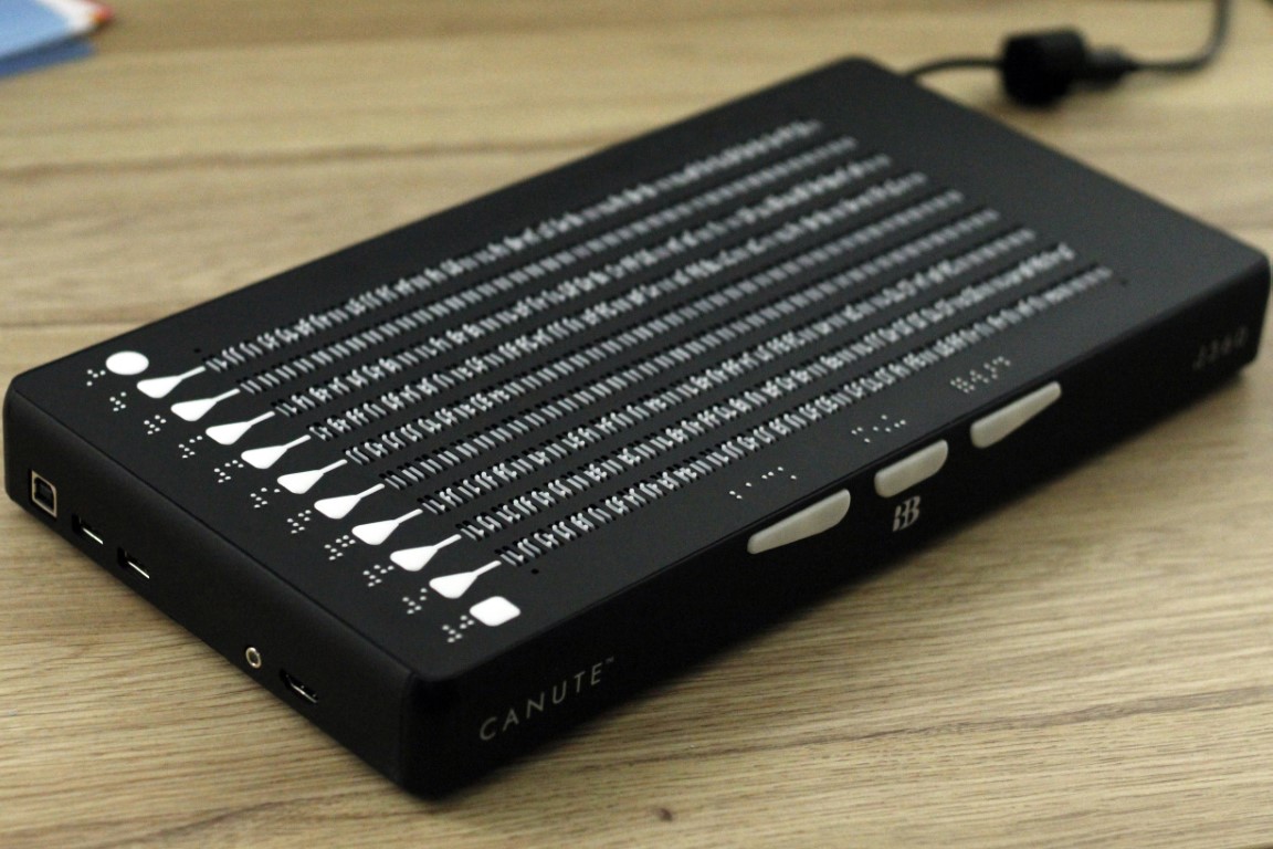 Первый в мире автономный многострочный дисплей Брайля Canute 360 - невероятно удобный помощник для комфортного чтения цифровых брайлевских книг. Совместим со всеми шеститочечными кодами Брайля. Идеален для прозы, математики, музыки, таблиц или графиков. Брайлевскую библиотеку можно хранить на внешнем USB-носителе, а также SD-карте в формате BRF или PEF и читать в удобное время на Canute 360. Также можно подключить стандартный компьютерный монитор к HDMI порту, чтобы видеть текст, отображающийся на Canute 360, одновременно плоскопечатным шрифтом и шрифтом Брайля.