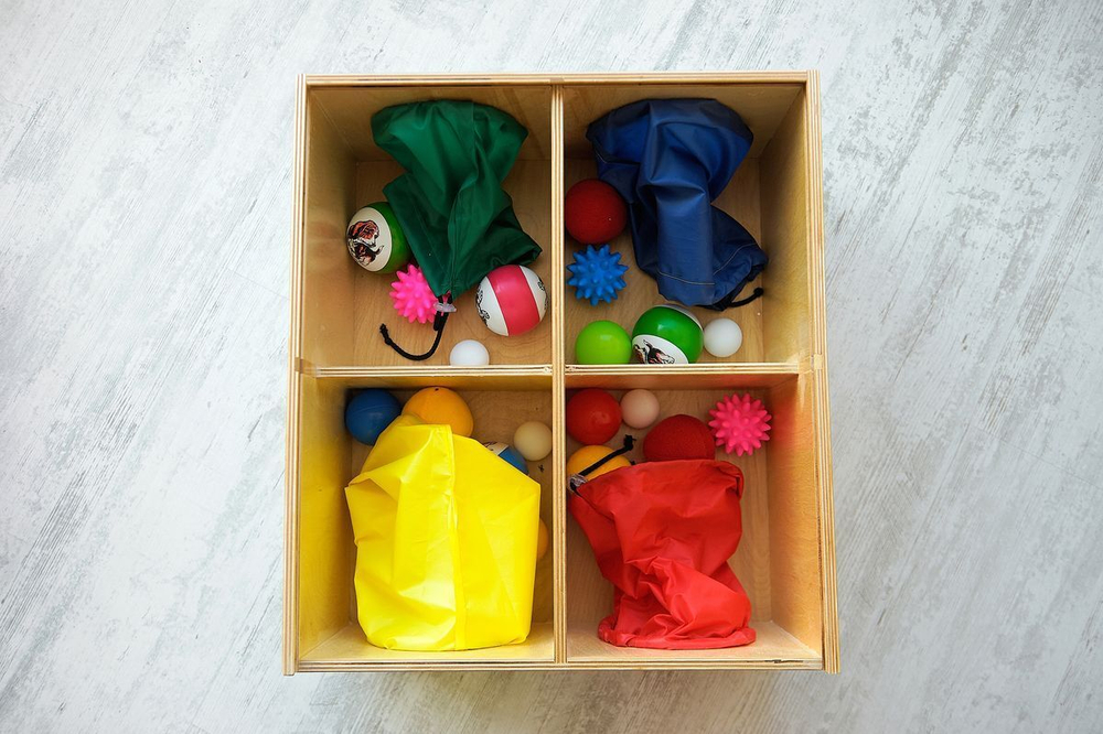 • 20 мячей, отличающихся по материалу, форме, цвету, плотности, массе, поверхности (гладкие и с выступами).
