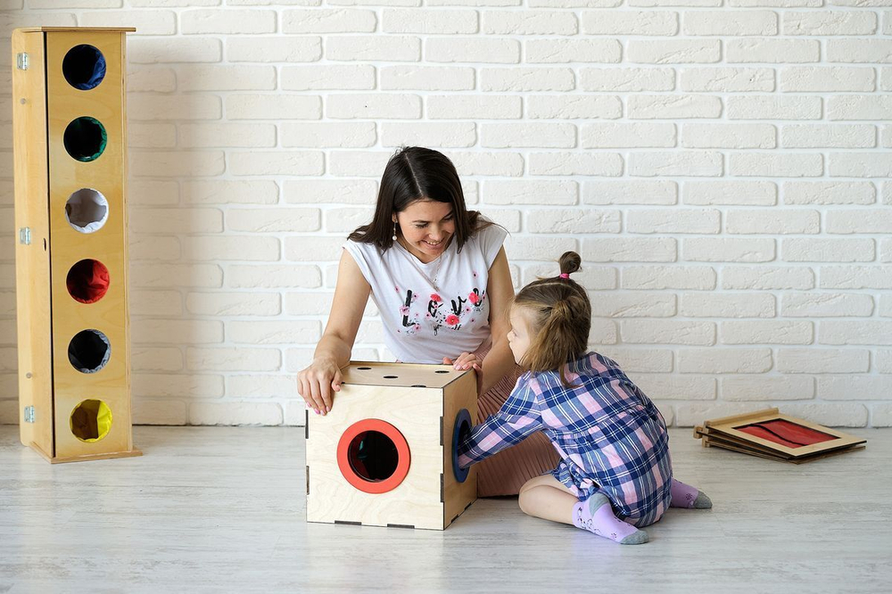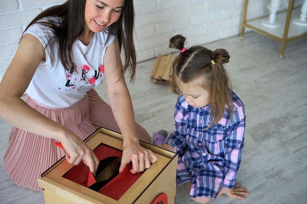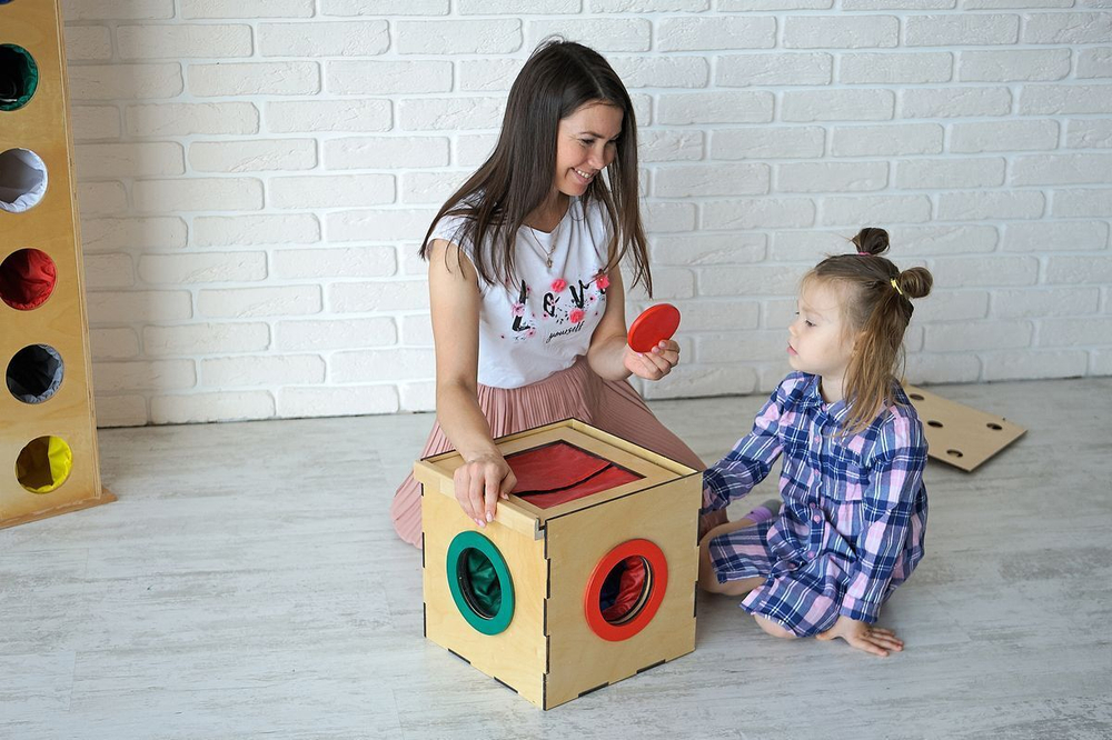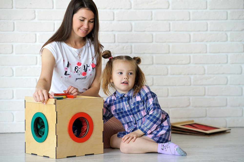 • «Угадай, что внутри». Цель: развитие тактильных ощущений, пространственного и логического мышления, мелкой моторики. Внутрь короба помещают различные предметы. Затем ребенок должен просовывать руки в короб, прощупывать предметы и описывать свои ощущения. Задача игрока – угадать, какие предметы были спрятаны.