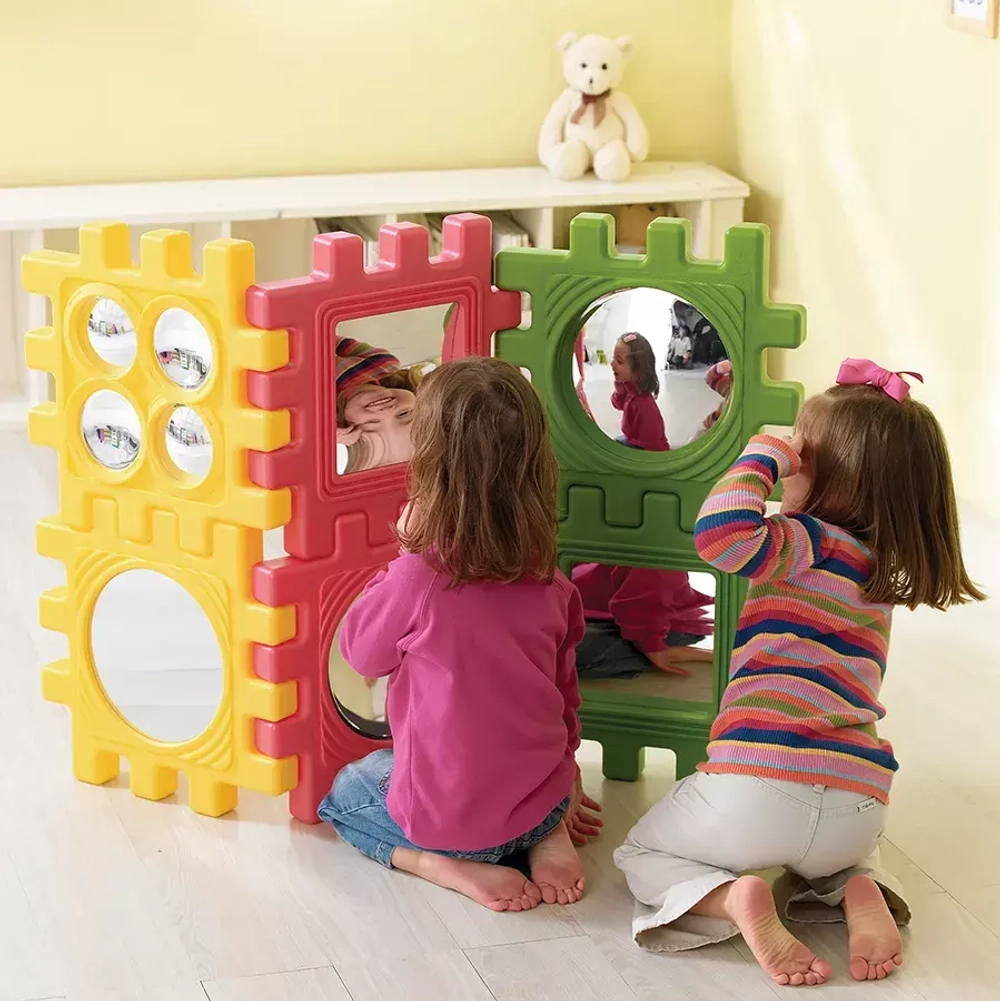 Различные типы искажений, создаваемых зеркалами (например, лица кажутся очень широкими или узкими), вызывают у детей любопытство и помогают им изучить основную концепцию отражения. С помощью зеркал психологи на своих занятиях смогут в игровой форме решать задачи связанные с развитием психо-эмоциональной сферы ребенка.