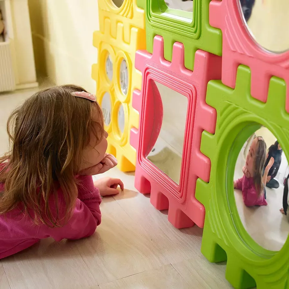 Развивайте любопытство детей и удовлетворяйте их интерес к изучению отражений с помощью игры с зеркалом. Серия We-Block растет вместе с ребенком, эта серия включает в себя тактильный куб, зеркальный куб, строительную башню и шестеренки, все наборы этой серии можно объединять, чтобы создать все уровни творчества.