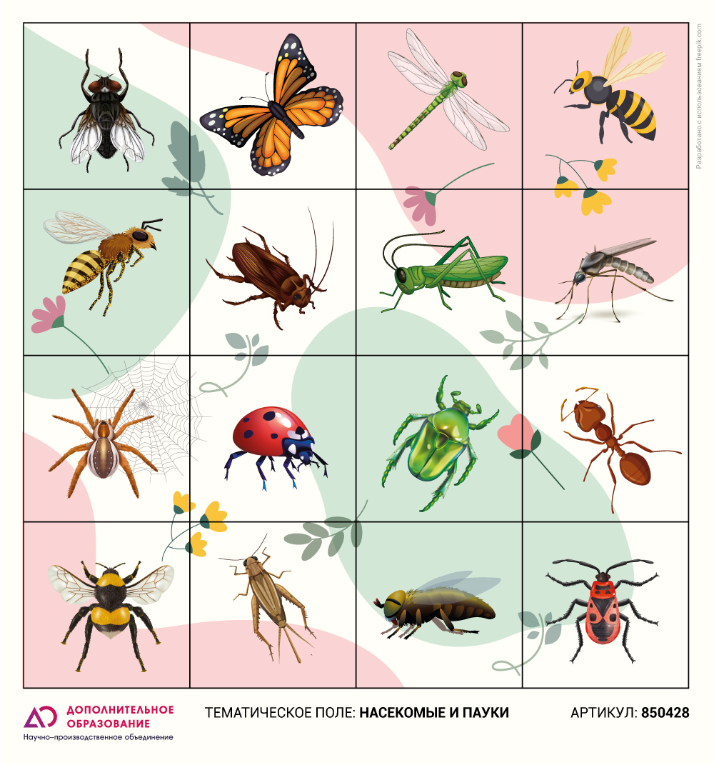 Тематическое поле-маршрутизатор "Насекомые и пауки" для ЛогоРобота "Пчелка" (Bee-Bot)