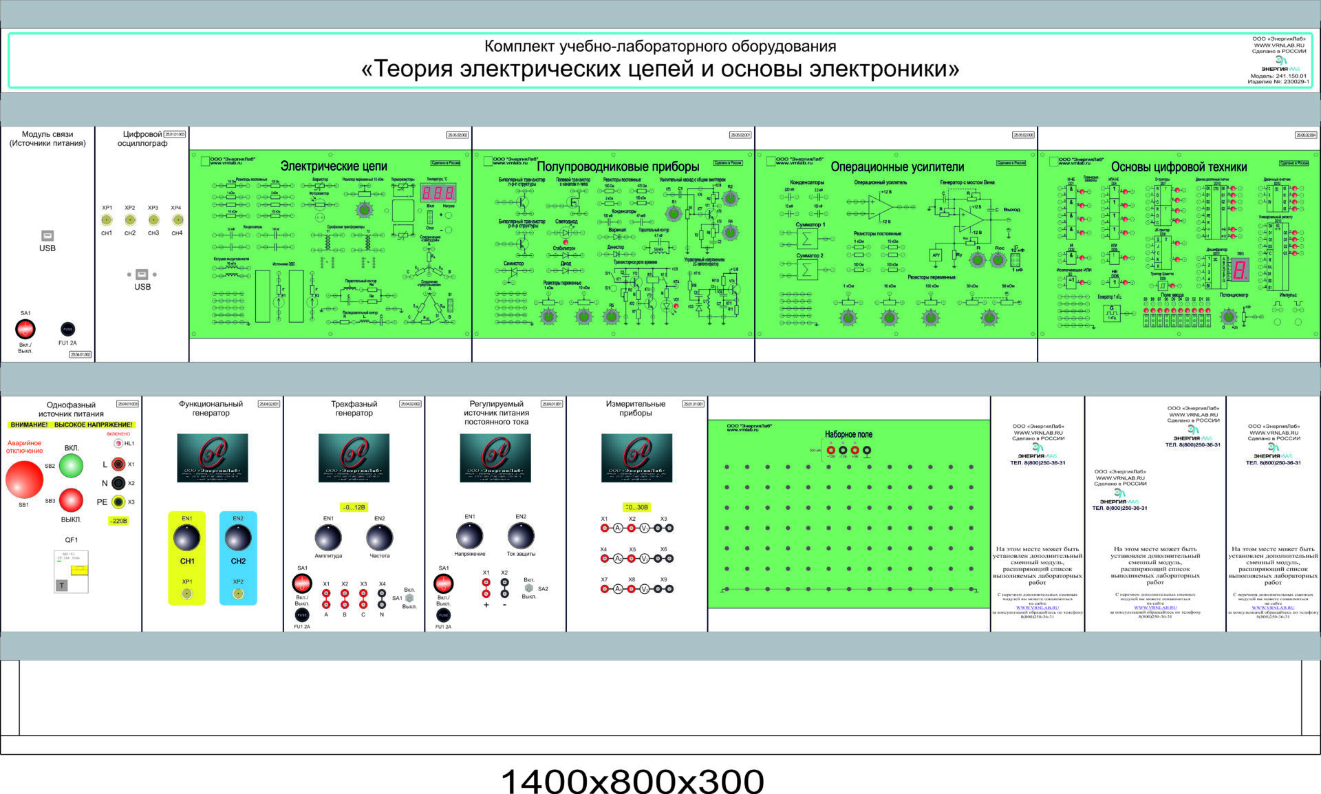 Комплект учебно-лабораторного оборудования «Теория электрических цепей и основы электроники» предназначен для проведения лабораторно-практических занятий в учреждениях начального профессионального, среднего профессионального и высшего профессионального образования, для получения базовых и углубленных профессиональных знаний и навыков.