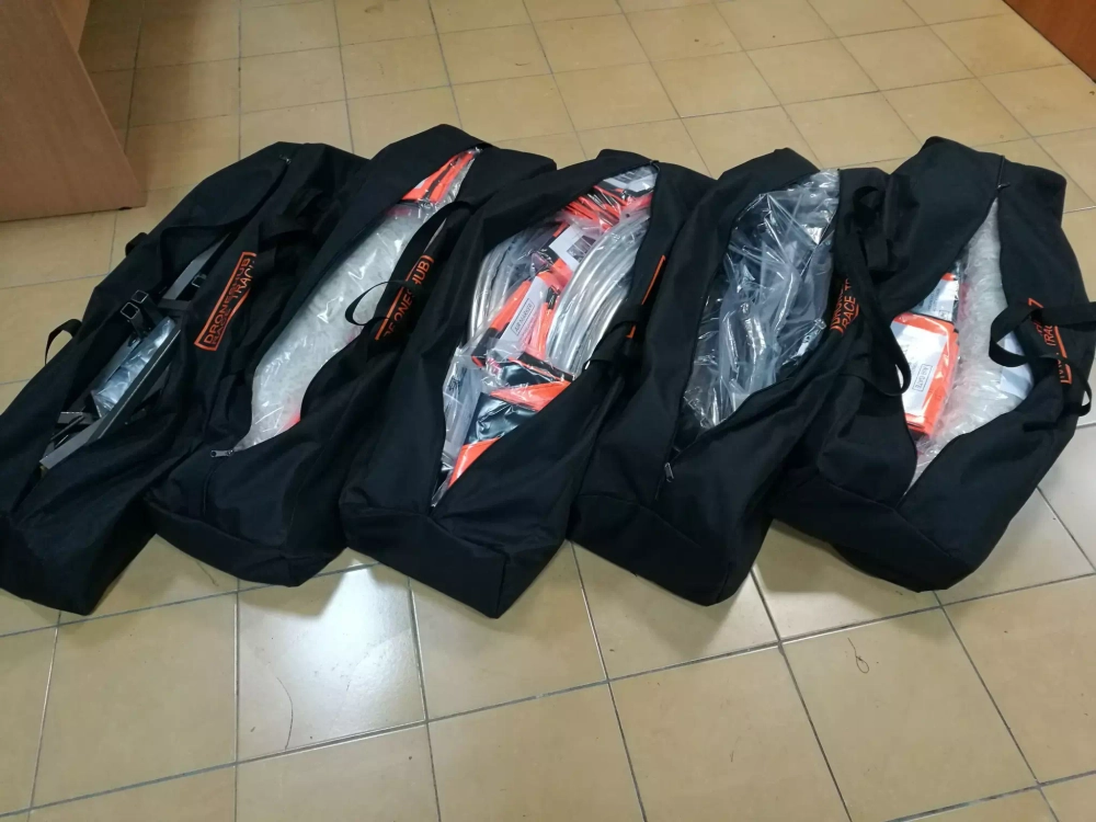 Траснпортный чехол сшит из прочной ткани, снабжен наклейками и удобными ручками. Застегивается на молнию, по всей длине чехла. Может быть забрендирован под заказчика.