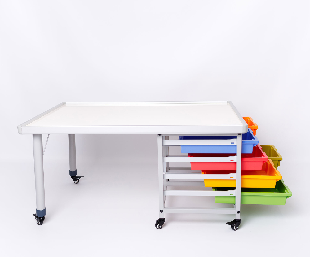 Стол передвижной: на колесиках (колесики оснащены фиксирующими стоп-механизмами).