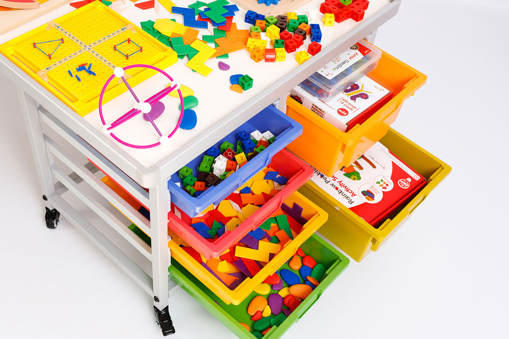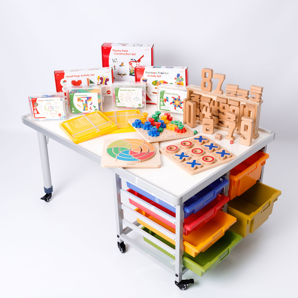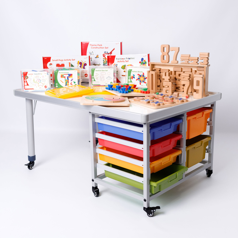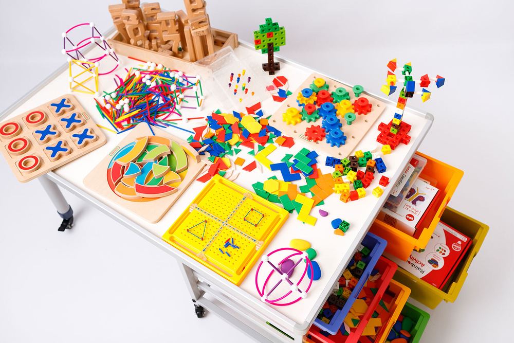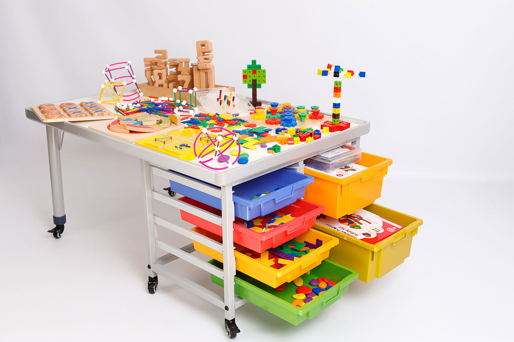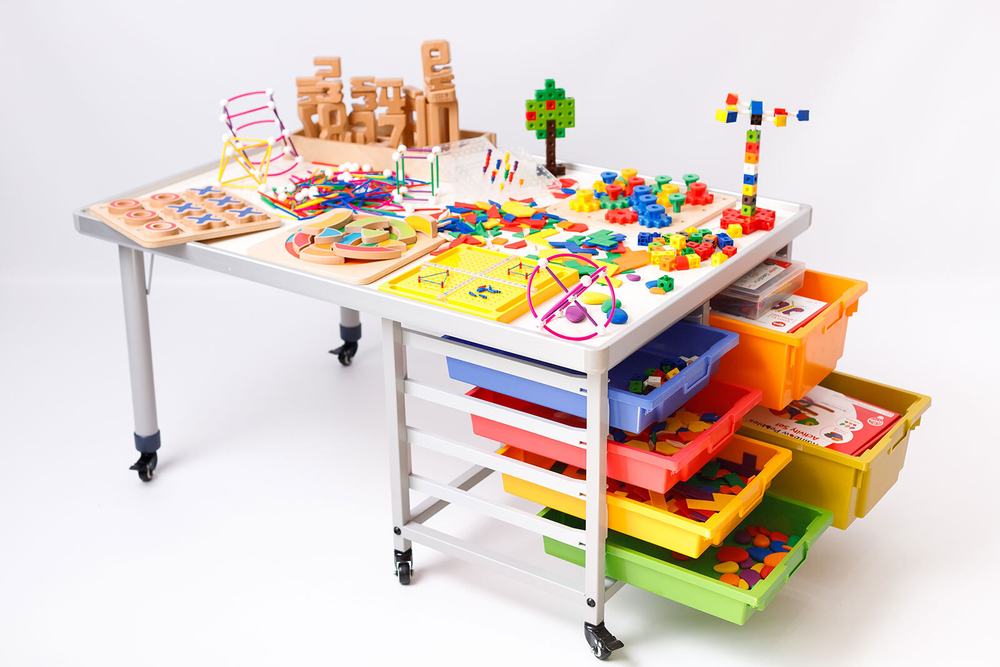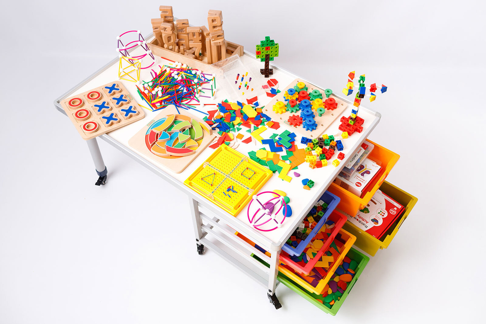Пособия и материалы, входящие в состав стола подобраны с учетом требований к качеству дошкольного образования, согласно рекомендациям МКДО, ECCERS – 3. И представляют конструкторы с разным типом крепления и без него. Предложенный перечень помогает расширить представление педагогов о конструировании и тех задач детского развития, которые можно решать.