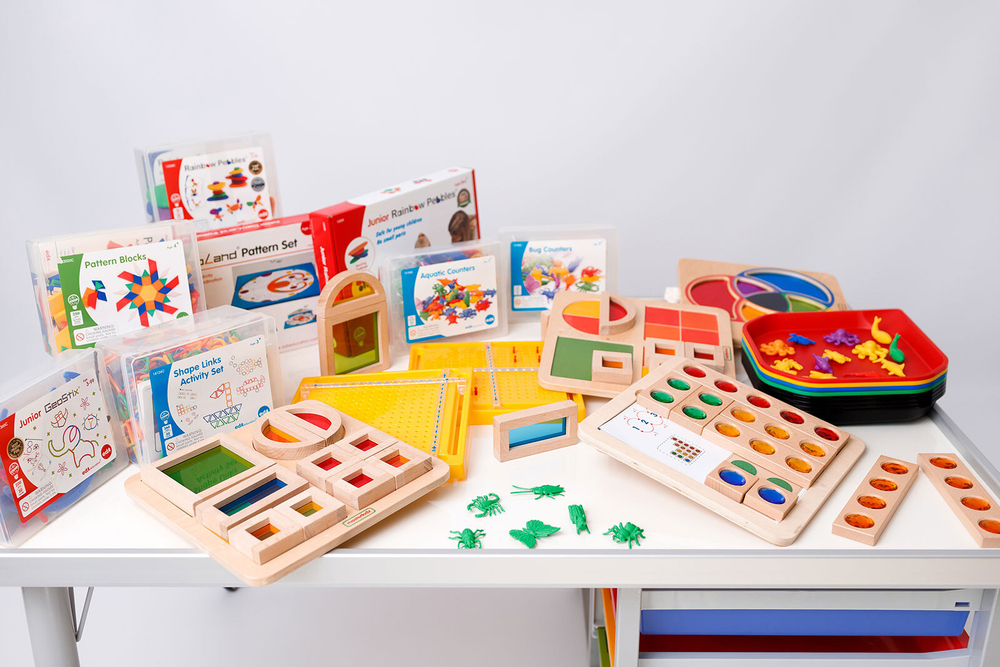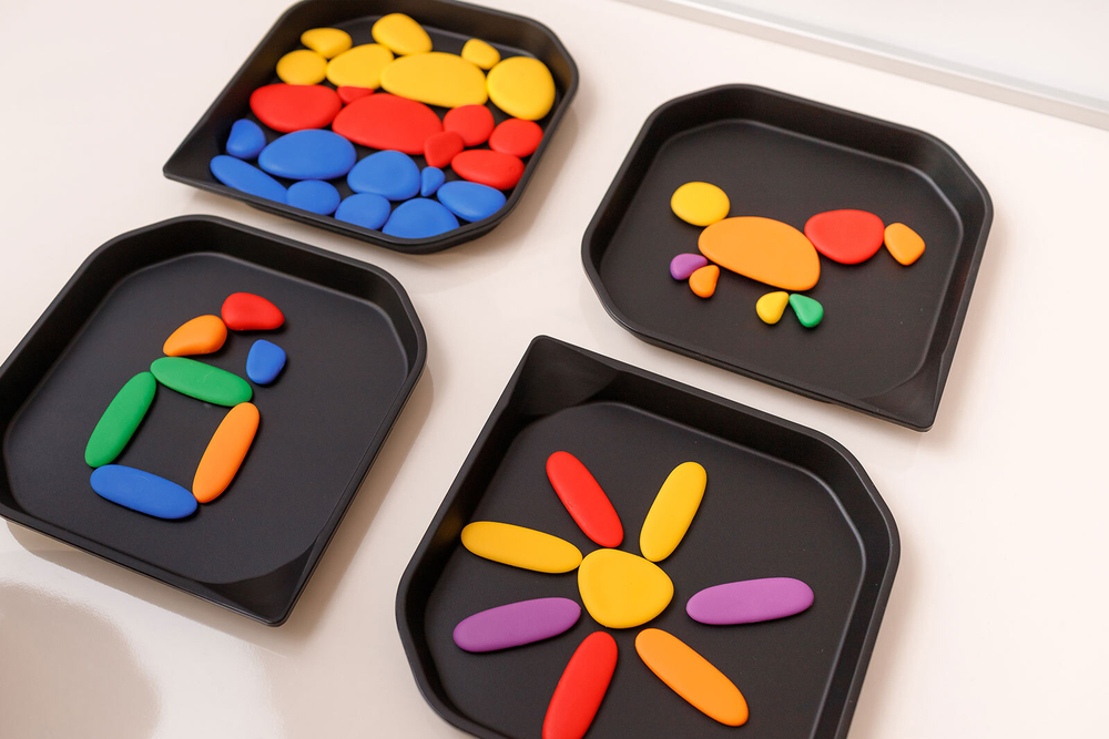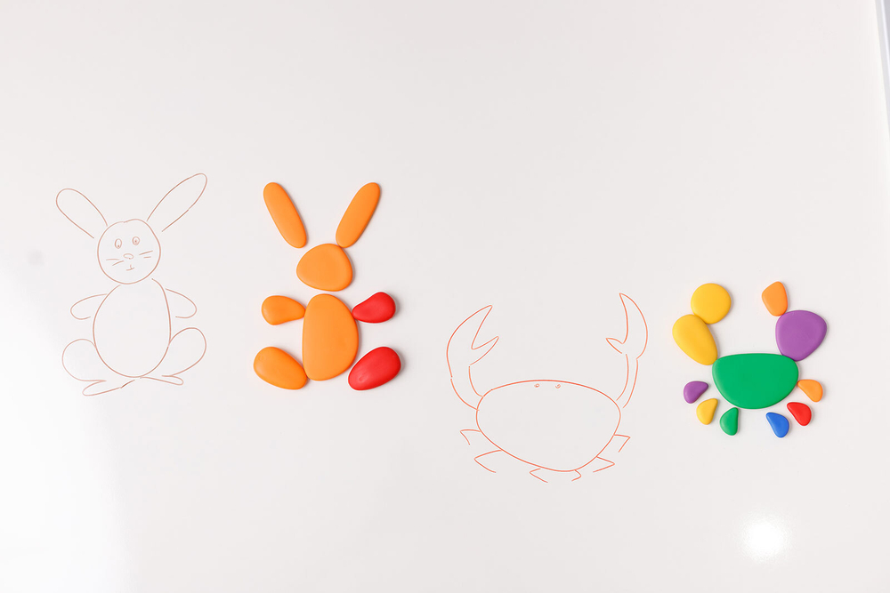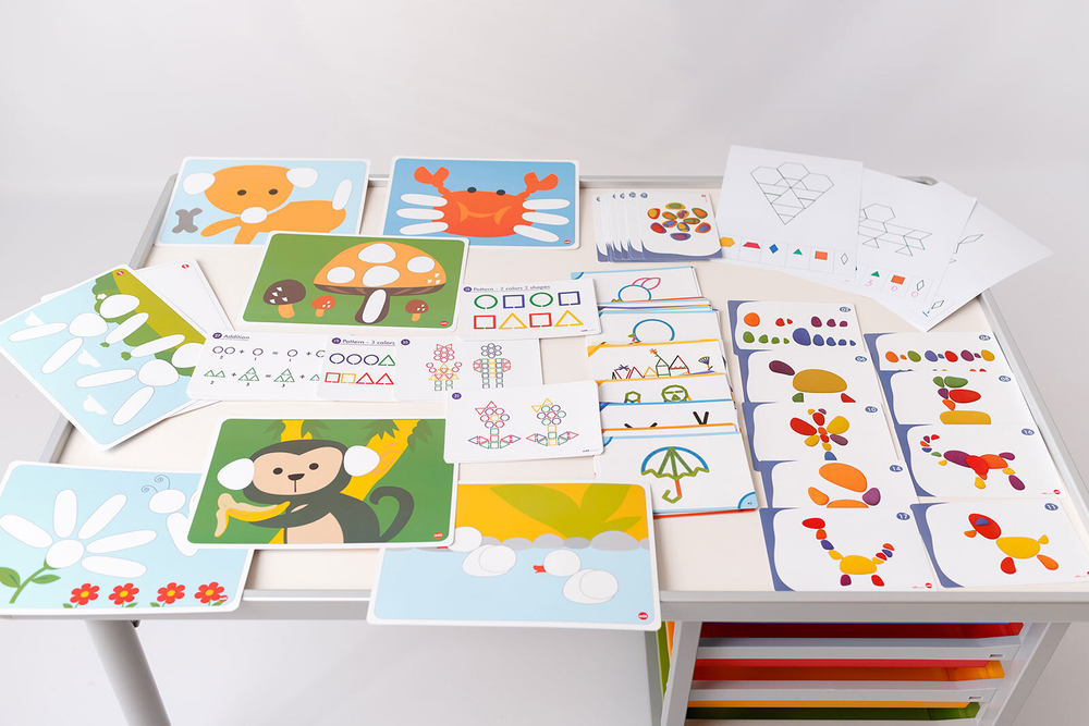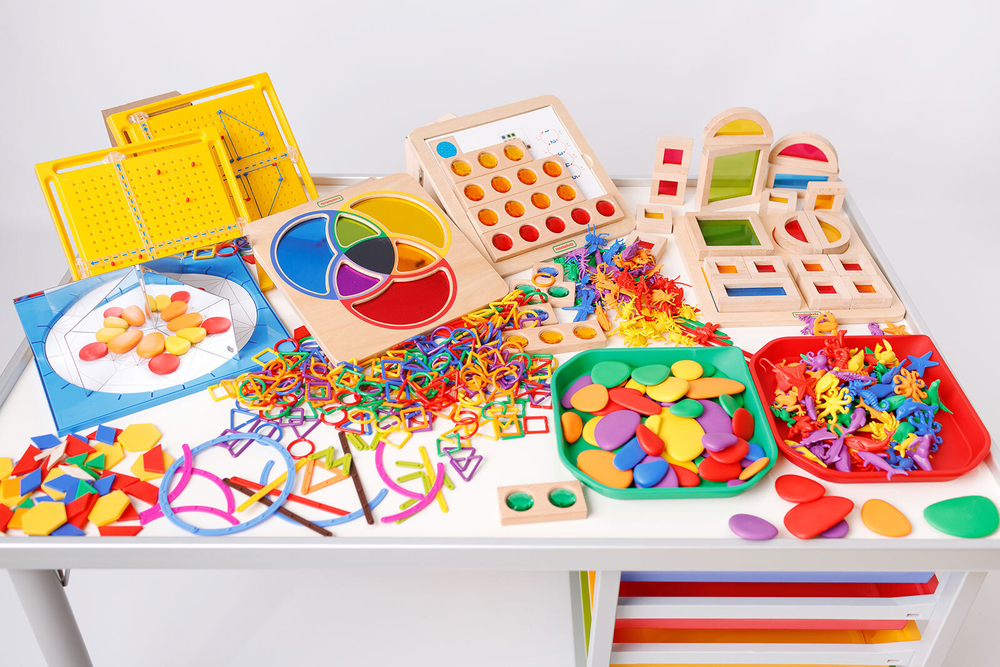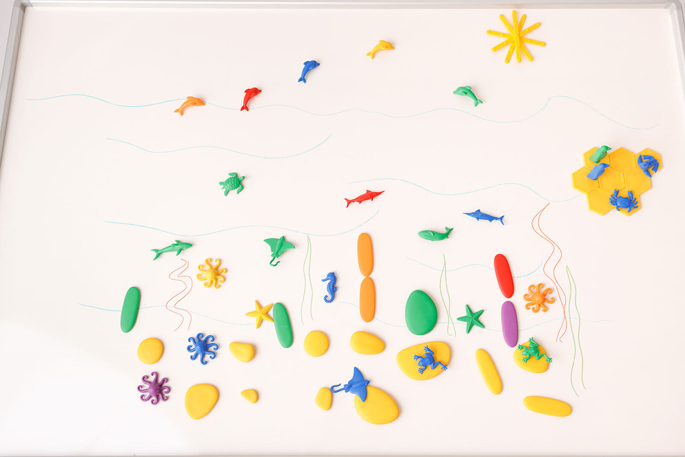 Например, геометрическая мозаика (на первый взгляд математический материал) может стать инструментом для сочинения и рисования историй, а счетный материал дополнит нарисованную на столе картину и превратит ее в объемную.