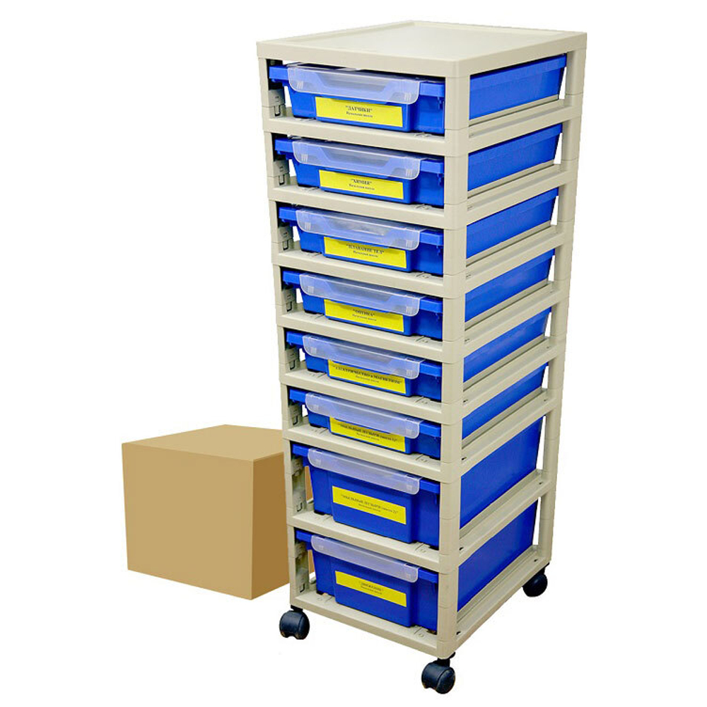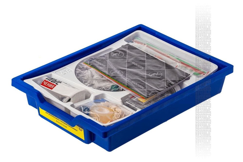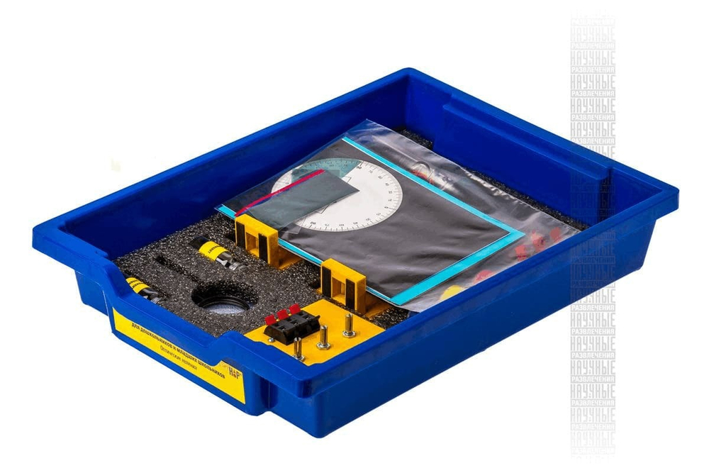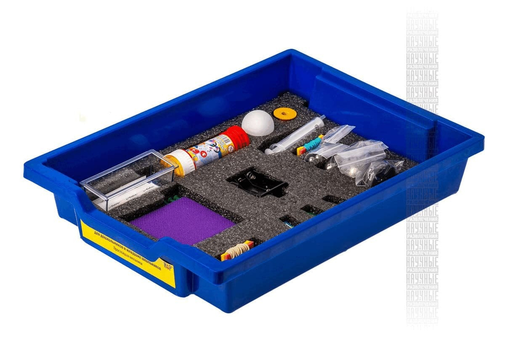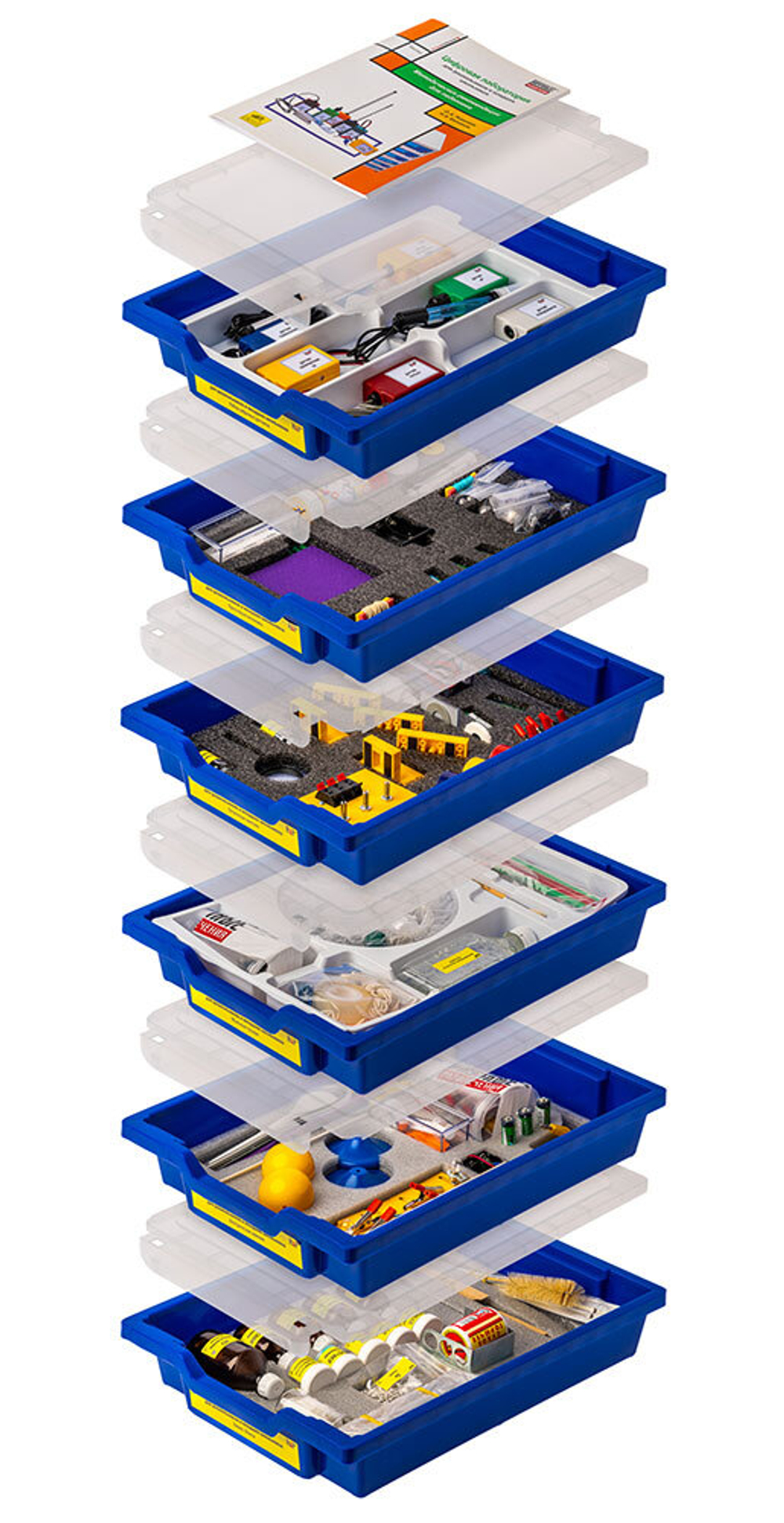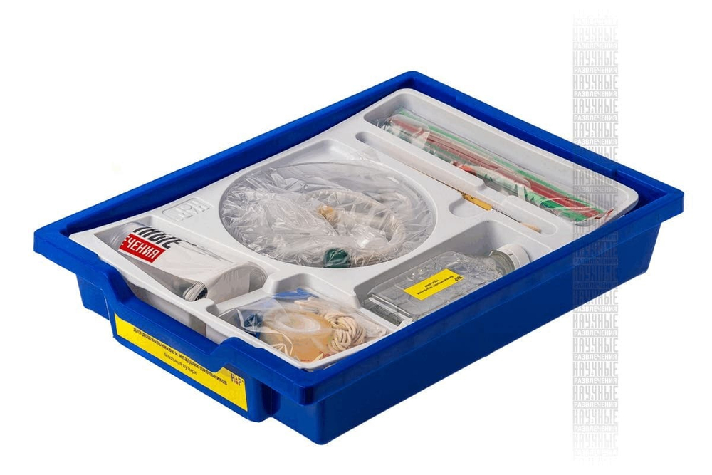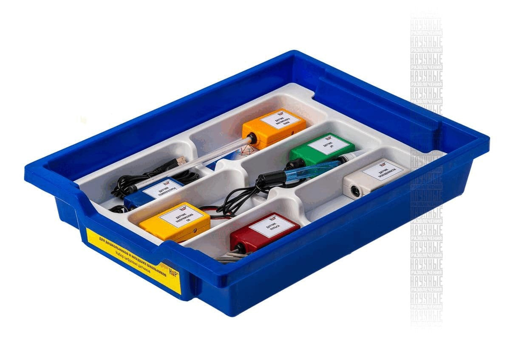 Состав – Набор цифровых датчиков в лотке: цифровой датчик магнитного поля (от -40 до +40 мТл) цифровой датчик напряжения (от -5 до +5 В) цифровой датчик освещенности (от 0 до 188000 лк) цифровой датчик пульса (от 30 до 150 ударов/мин) цифровой датчик pH (от 0 до 14 ед. pH) цифровой датчик температуры (от -20 до +110 градусов Цельсия) – Набор лабораторного оборудования по разделу «Оптические явления» в лотке – Набор лабораторного оборудования по разделу «Простейшая механика» в лотке – Набор лабораторного оборудования по разделу «Химия. Опыты» в лотке – Набор лабораторного оборудования по разделу «Электрические явления» в лотке – Набор лабораторного оборудования по разделу «Мыльные пузыри» в лотке – Стойка на колесах для хранения 6 лотков – Соединительный кабель – Программное обеспечение