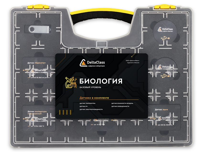 Для эффективной организации лабораторных занятий в школе требуется наличие специального учебно-лабораторного оборудования. Комплект оборудования для экпериментов по биологии с использованием цифровой лаборатории DELTACLASS соответствует методическим рекомендациям, изложенным в пособие "Лабораторные работы по биологии", и позволяет проводить опыты по следующим направлениям: