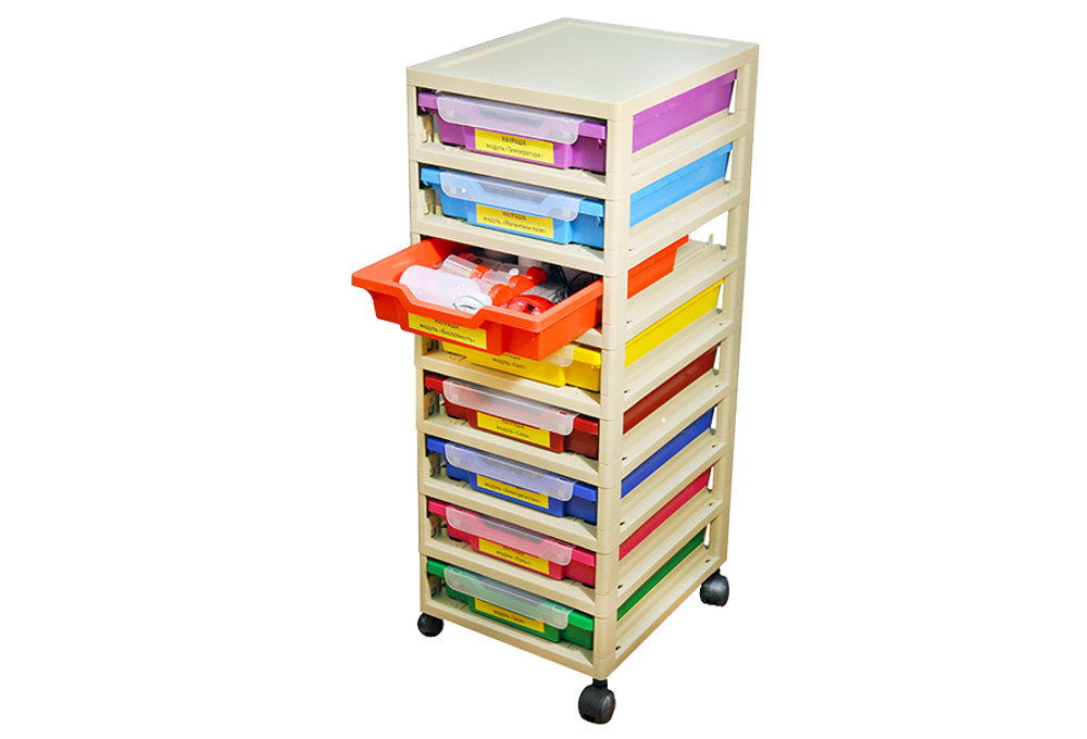 В состав детской цифровой лаборатории входят 8 модулей (лотков), каждый из которых посвящен отдельной теме: