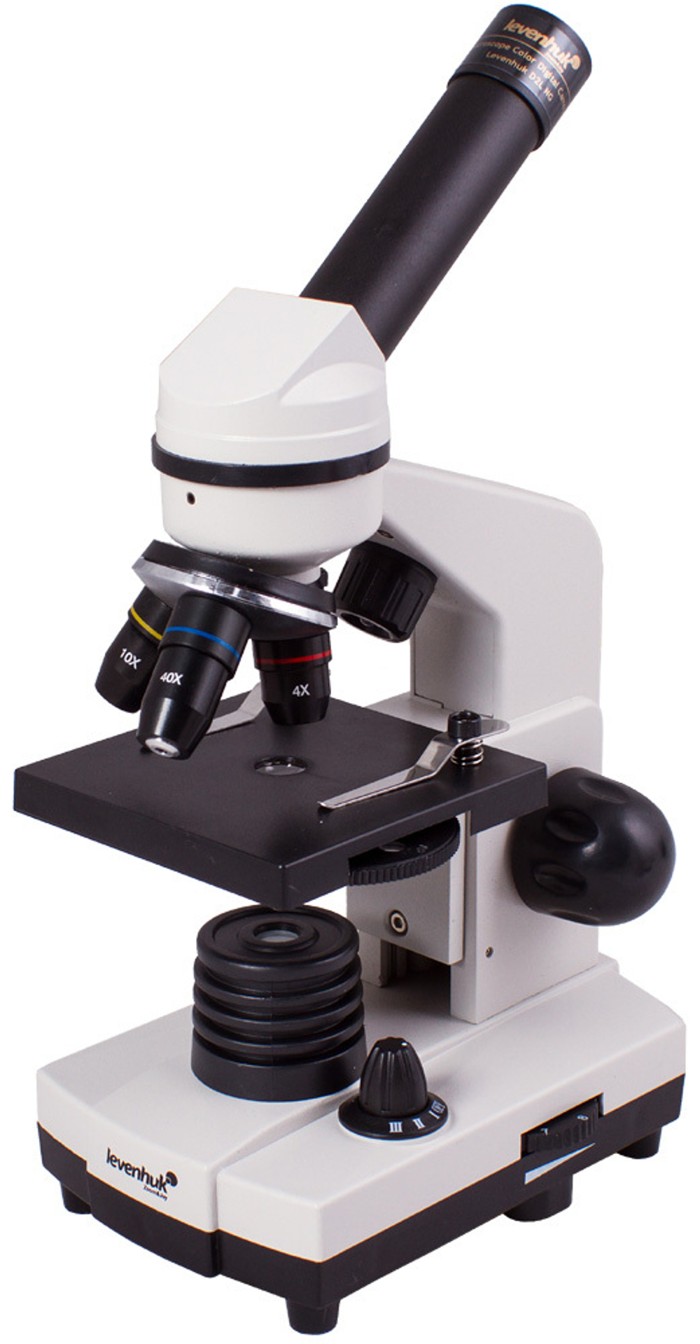 Корпус Levenhuk Rainbow D2L сделан из прочного пластика – он легче металлического и в то же время достаточно надежный для частого использования. Окулярная трубка наклонена под углом 45° – это позволяет с комфортом смотреть в микроскоп. Подсветка может работать и от сети переменного тока, и от батареек.