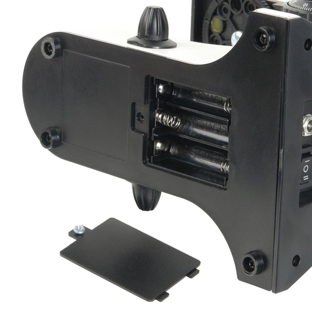 Осветители работают от сети 220 В (через адаптер, который входит в комплект) и от батареек, что дает возможность использовать микроскоп и дома, и в учебном классе, и в полевых условиях.