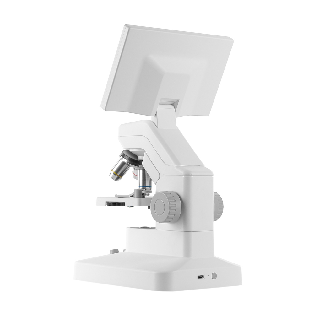 Цифровой дисплей: Микроскоп оснащен цветным LCD дисплеем с диагональю 7 дюймов и разрешением 1024x600 пикселей, что позволяет удобно рассматривать объекты без необходимости смотреть в окуляр. Это особенно важно для детей, так как снижает нагрузку на глаза и делает процесс наблюдения более комфортным.