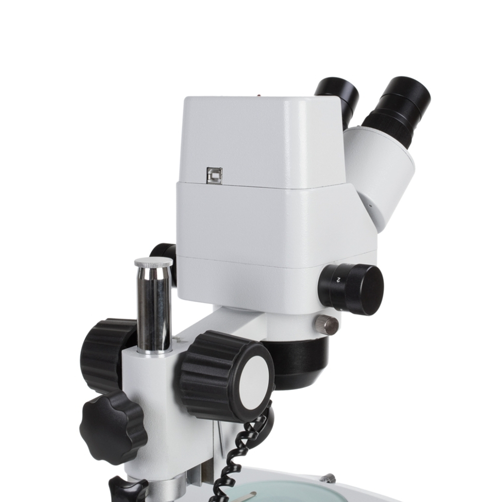 В отличии от тринокулярных моделей стереомикроскопов, у которых производится переключение светового потока с левого тубуса на вертикальный выход, МС-2-ZOOM Digital в режиме включенной камеры позволяет производить наблюдение обоими глазами.
