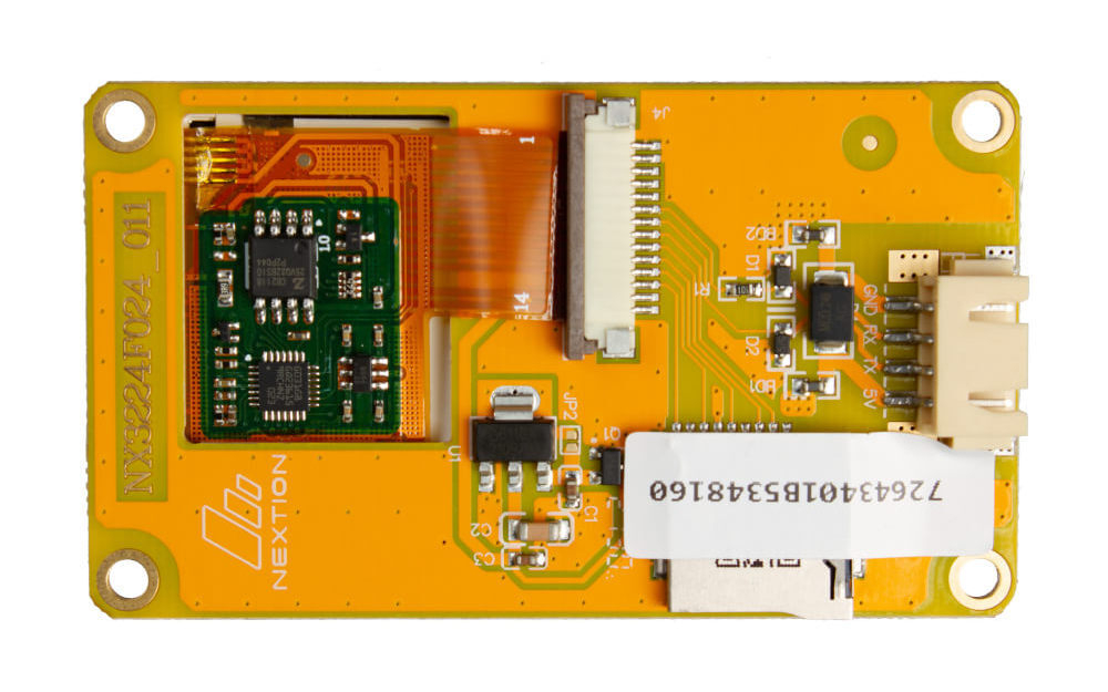 Дисплей Nextion NX3224F024 относится к младшей серии Discovery – она аналогична Basic, только с более мощным микроконтроллером на борту. Это позволило применить более эффективный алгоритм сжатия картинок, который экономит место во встроенной Flash-памяти дисплея.