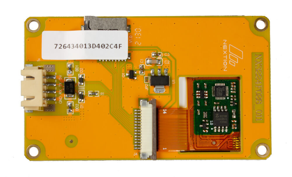 Дисплей Nextion NX3224F028 относится к младшей серии Discovery – она аналогична Basic, только с более мощным микроконтроллером на борту. Это позволило применить более эффективный алгоритм сжатия картинок, который экономит место во встроенной Flash-памяти дисплея.